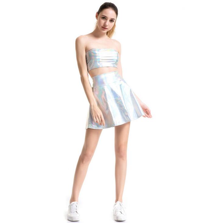 レザースカート レディースミニスカート ハイウエスト Aラインスカート 光沢スカート セクシー フェイクレザー ジャズダンス Jazz ダンス衣装 ステージ衣装 パーティー クラブ 黒 金 銀 7色