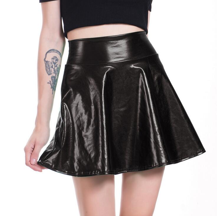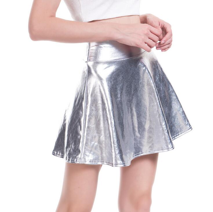 レザースカート レディースミニスカート ハイウエスト Aラインスカート 光沢スカート セクシー フェイクレザー ジャズダンス Jazz ダンス衣装 ステージ衣装 パーティー クラブ 金 銀 7色 黒