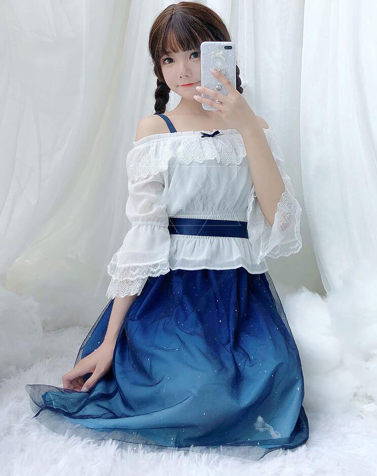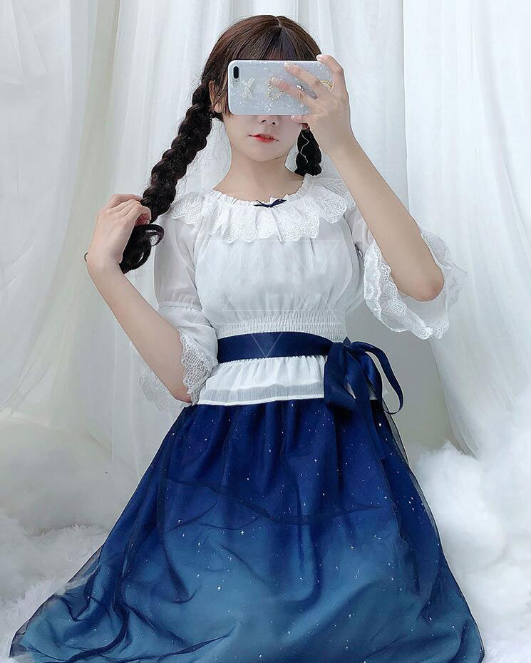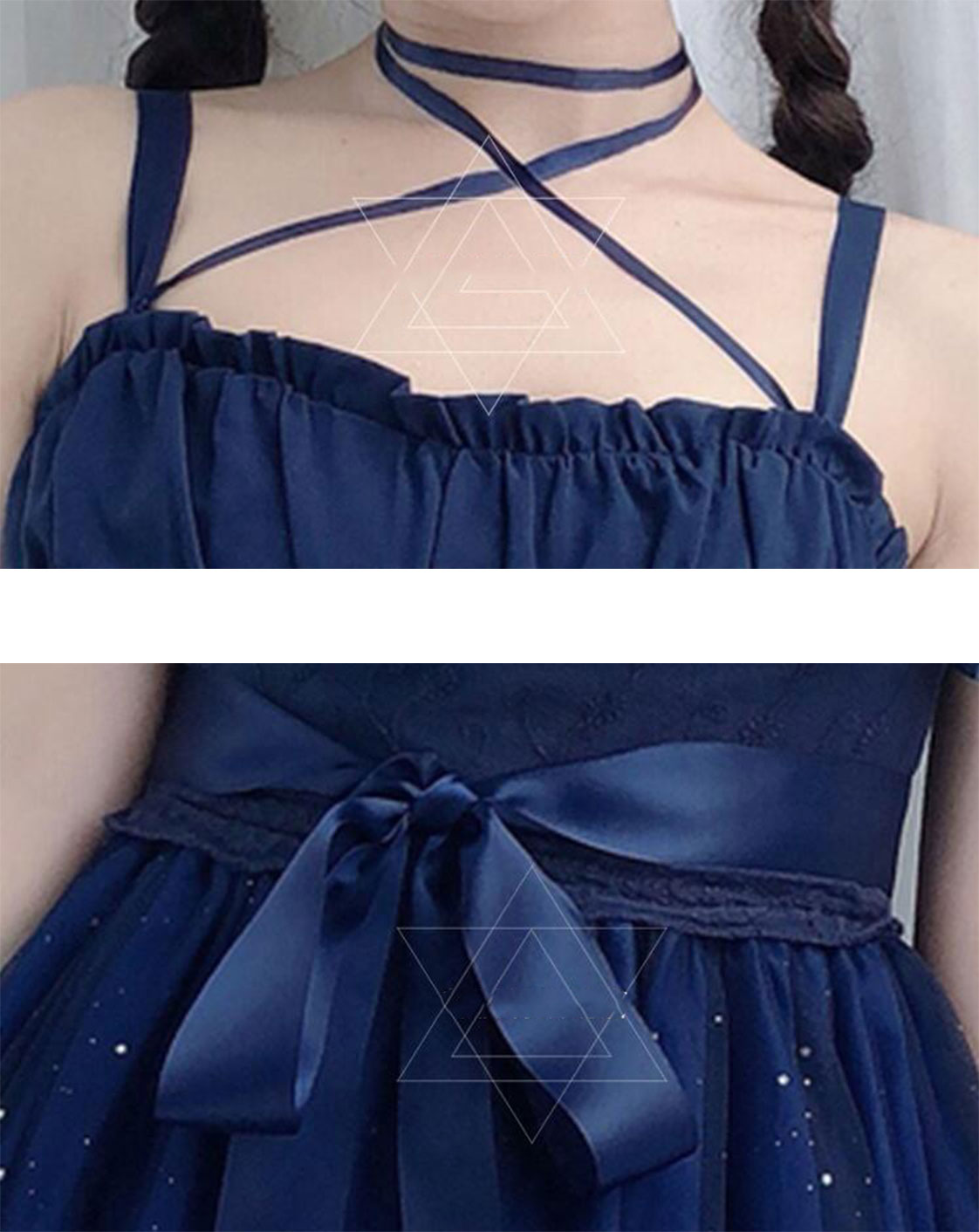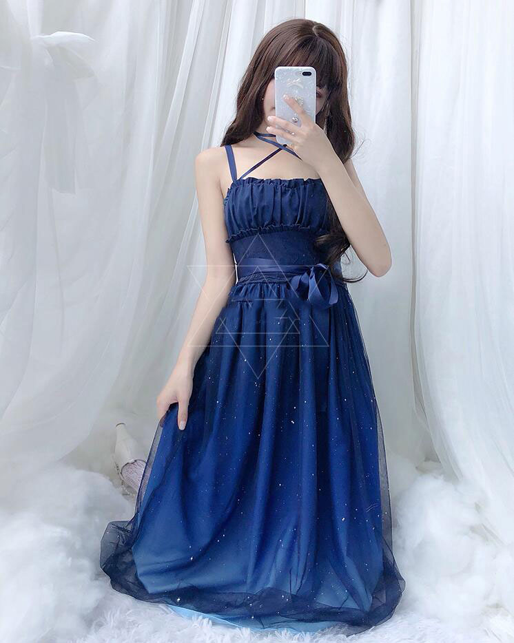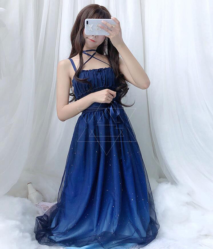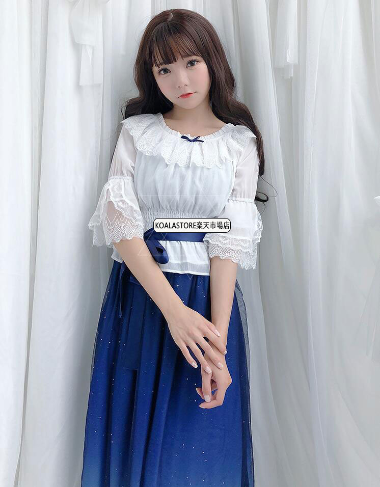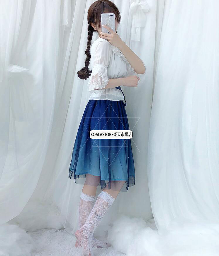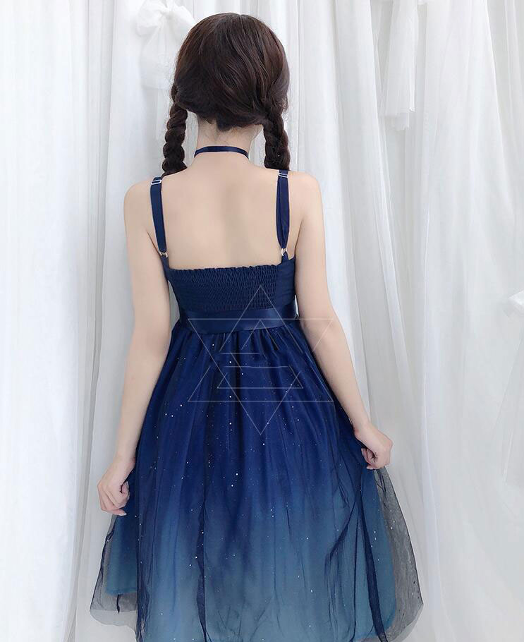 レディースワンピース 可愛いジャンパースカート ショート丈/ロング丈 グラデーション チュールワンピース 星屑柄 シフォンブラウス レディースドレス ロリータワンピース 大人可愛い かわいい キュット 美少女ウェア 夏服 デイリー パーティー 紺 S M L