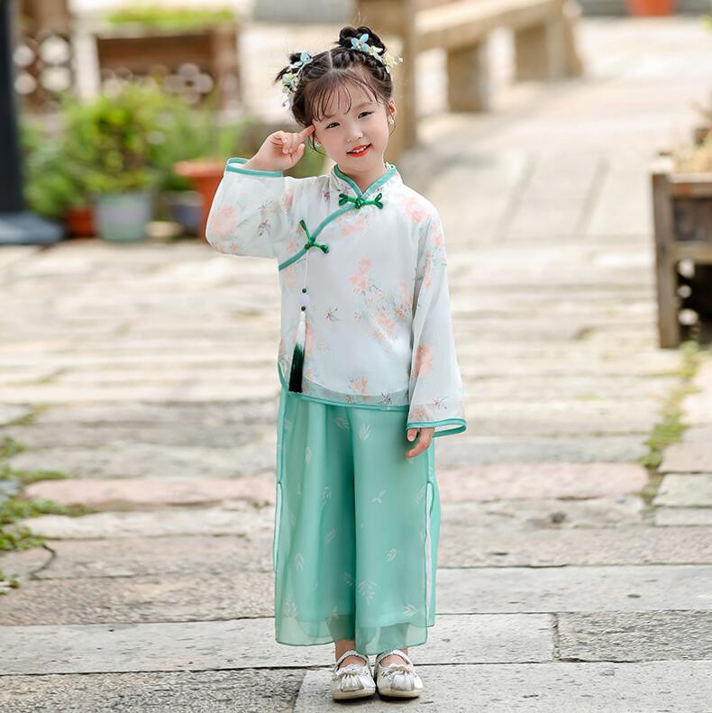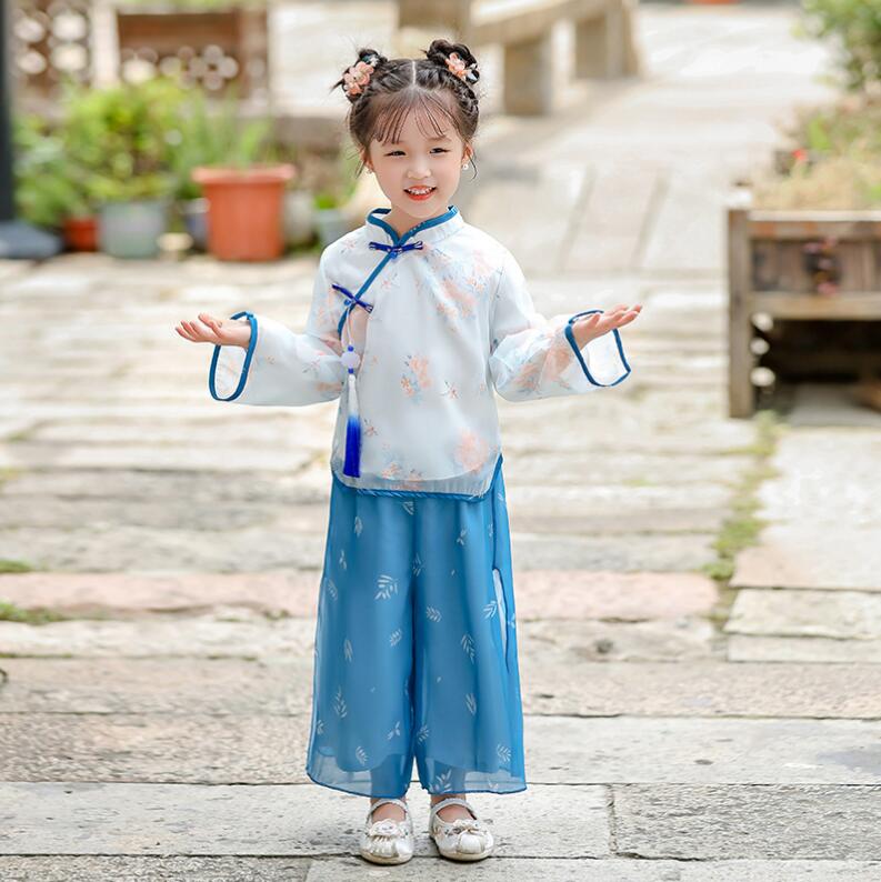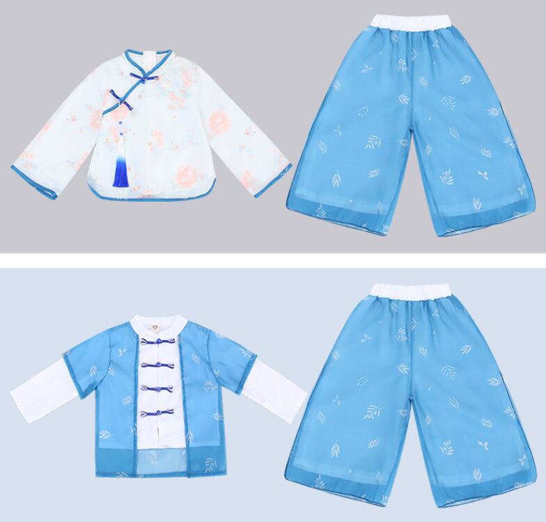 キッズ漢服 長袖シャツ 子供漢服衣装 中華古代服 チャイナボタン 唐装 古典美人服 舞台衣装 ステージ衣装 団体服 中華服 チャイナ服 中華風 チャイナ風 華流衣装 イベント 仮装 コスチューム 写真撮影 伝統楽器演奏会 二胡古筝 華やか 合唱団 2色
