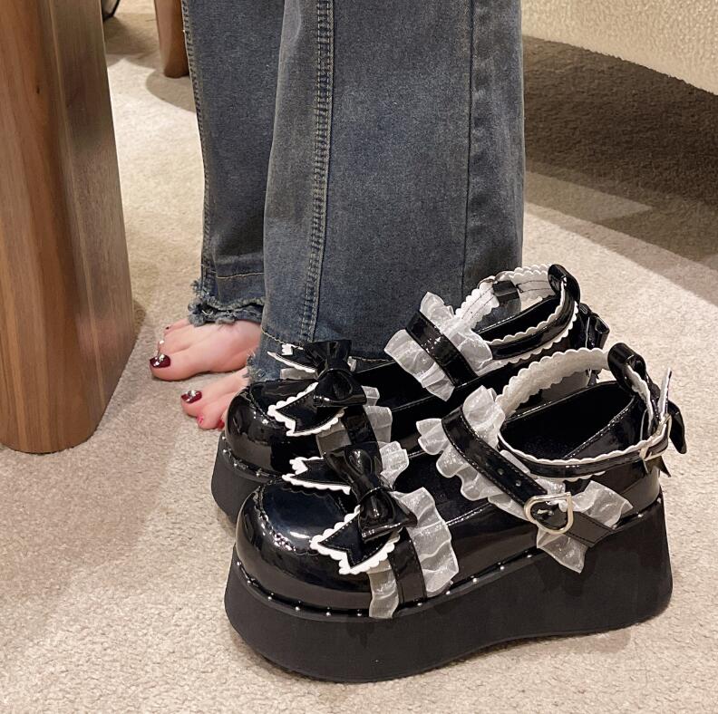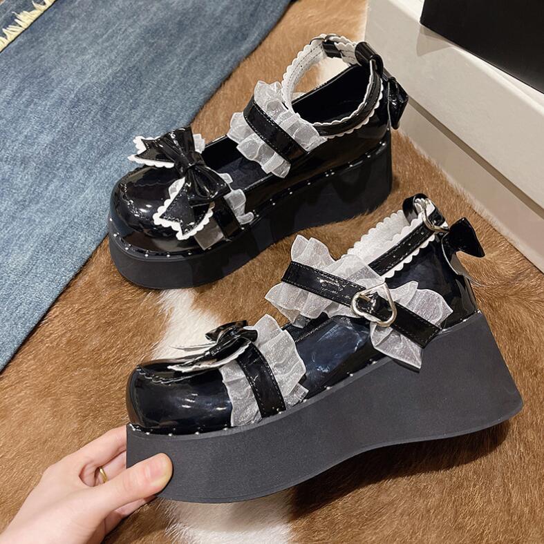 可愛いロリータ靴 ロリータパンプス 厚底靴 レディース パンク風 シューズ ゴスロリ 蝶結び ロリータ風 lolita メイド靴 ロリータコーディネート 文化祭
