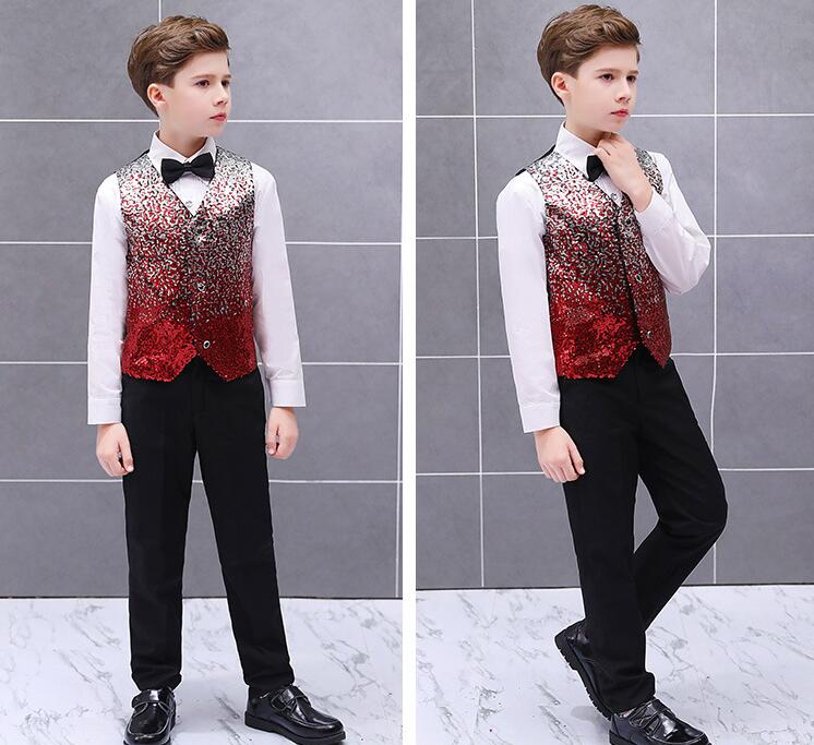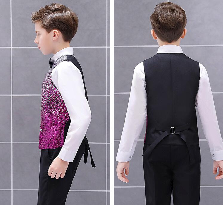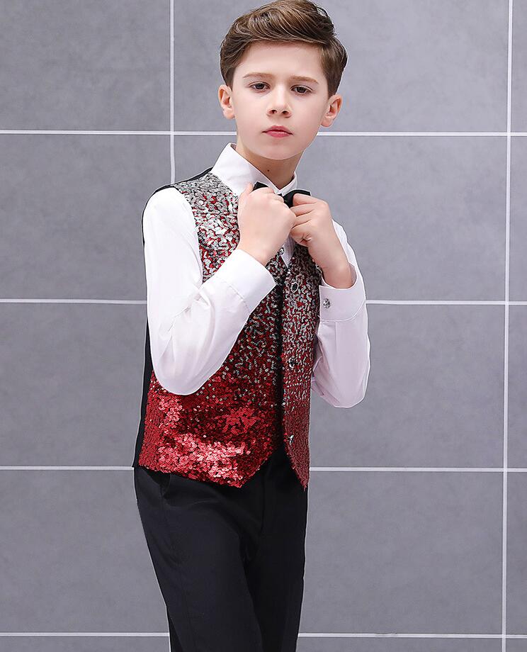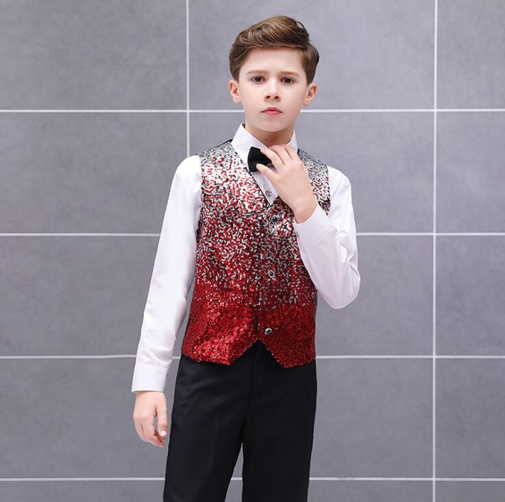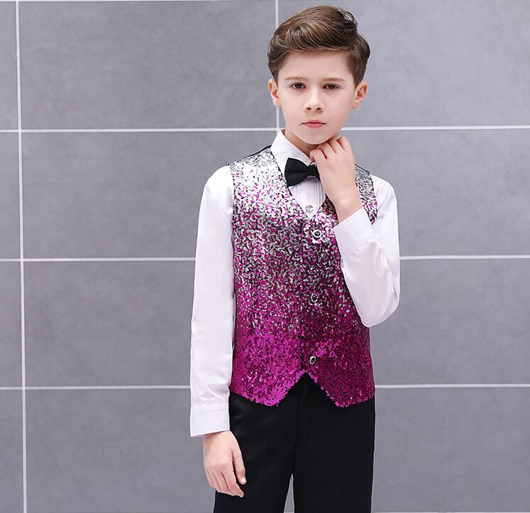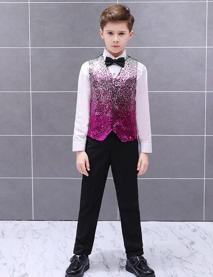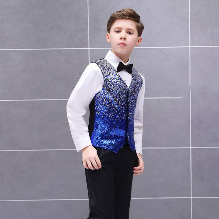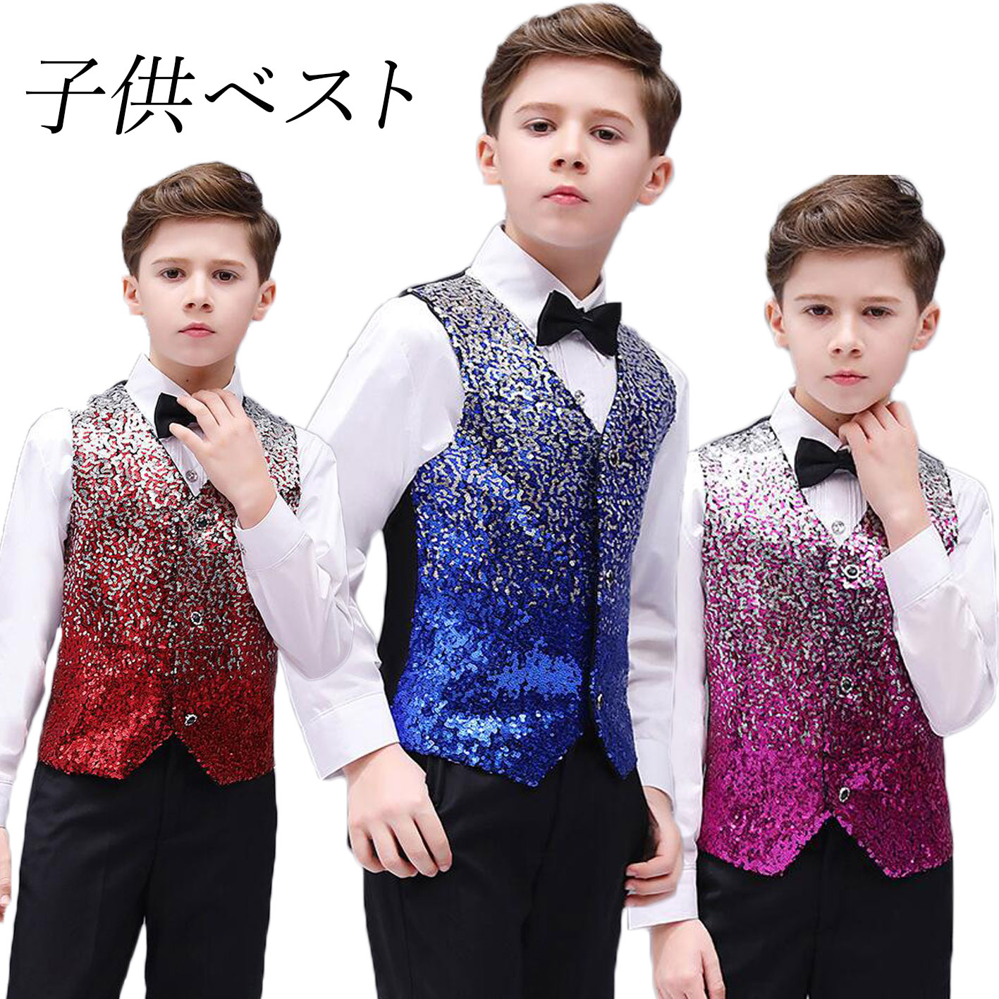 子供スパンコールベスト グラデーション 男の子舞台ステージ衣装 舞台衣装 合唱団 団体服 学園祭 司会者 フォーマル 子供礼服 写真撮影 結婚式 演歌 新年会 マント 漫才 余興 忘年会 パーティー 舞台パフォーマンス ベストのみ 3色
