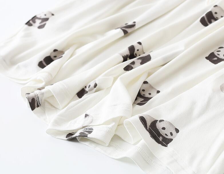 レディースパジャマ 上下セット モダールパジャマ パンダ柄 可愛いルームウェア 半袖 ナイトウエア 部屋着セット クールネック ふんわり ゆったり 涼しい 春夏 入院 産後 プレゼント 贈り物 フリーサイズ ホワイト ピンク