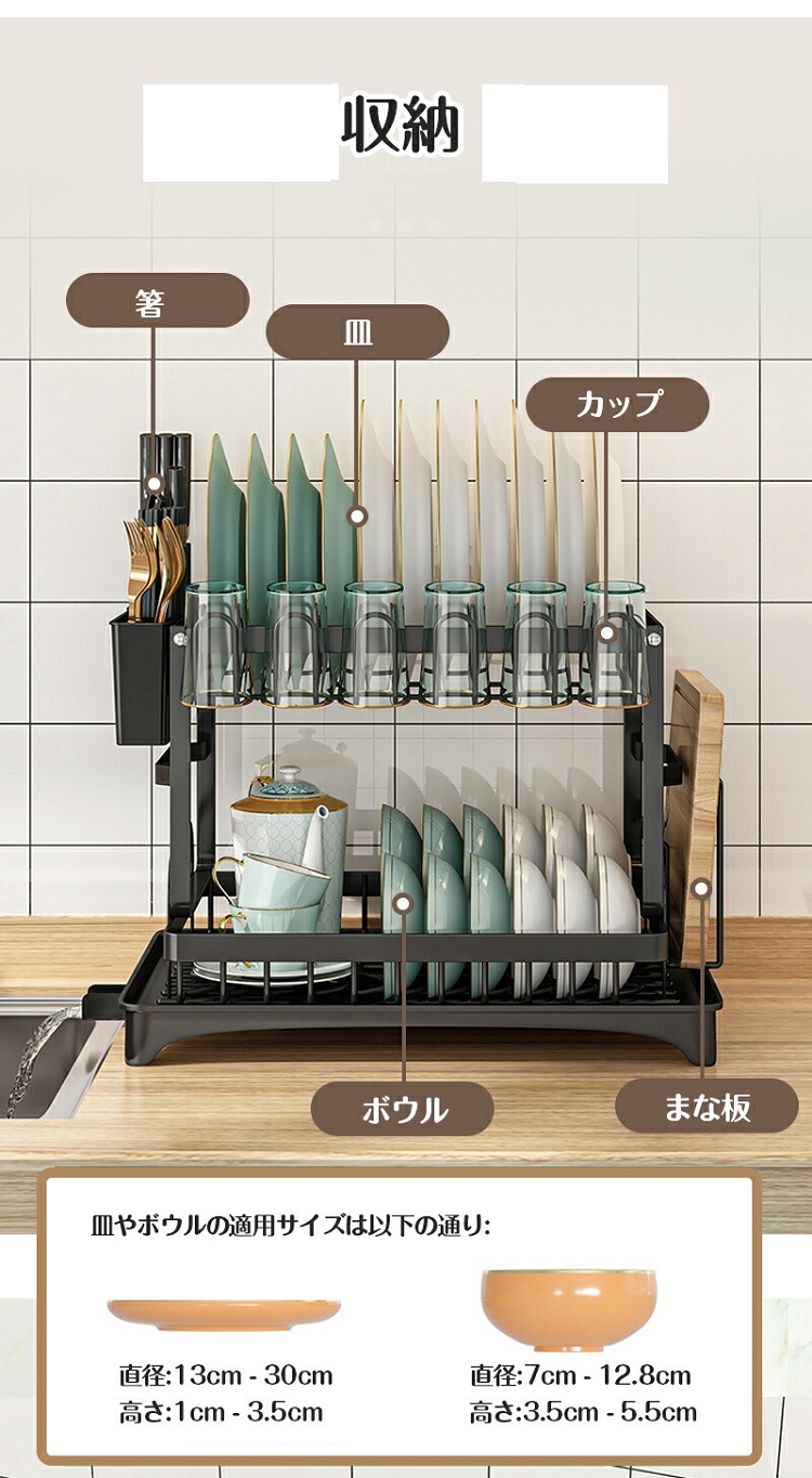 新入荷 伸縮式 水切り ラック食器水切りラック 水切りかご 2段式 食器乾燥ラック シンク上 食器 2段式水切りラック 組み立て簡単 省スペース 箸立て コップ立て まな板立て 包丁スタンド 大容量 水きりかご キッチンラック