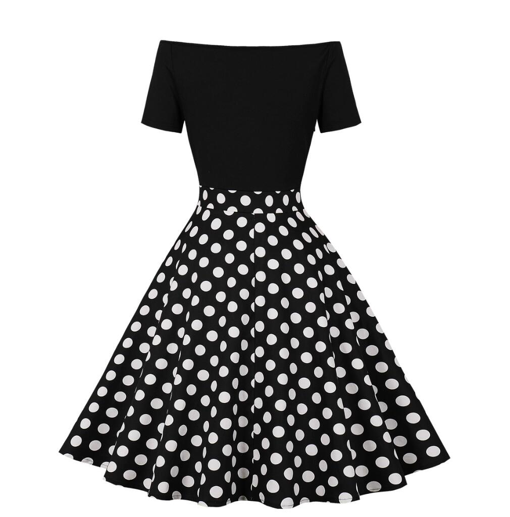 レディースワンピースドット水玉柄ワンピース レトロドレス Aライン ダンス衣装 フレアワンピース オフショルダーネック 社交ダンスウェア 着痩せ 舞台ステージ衣装 団体服