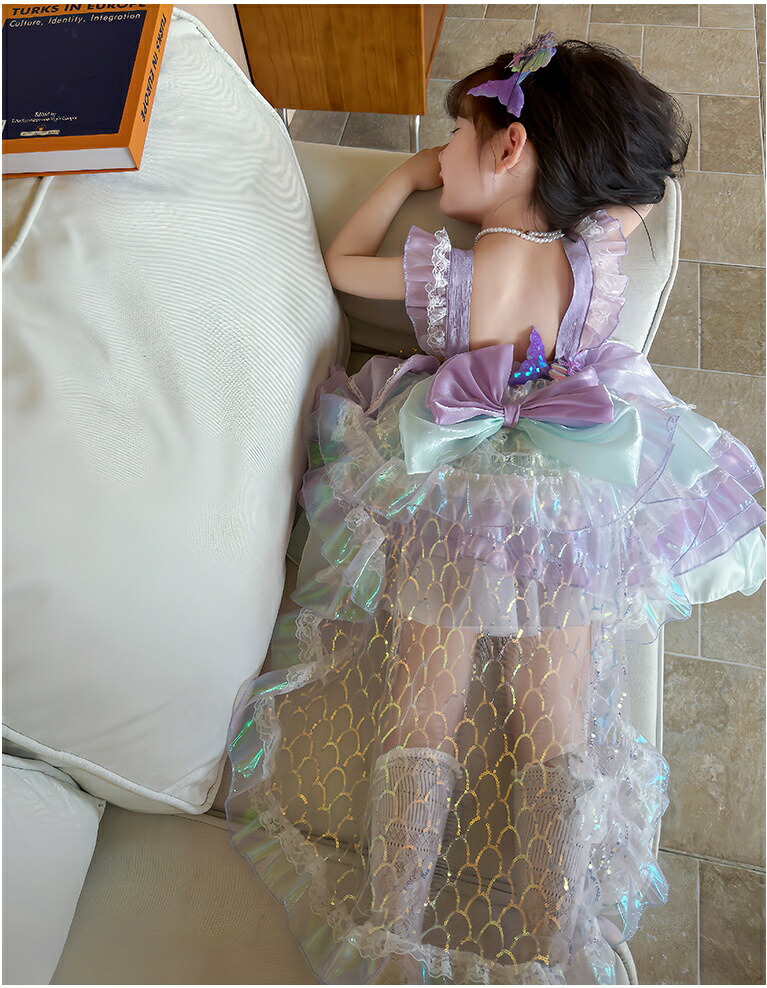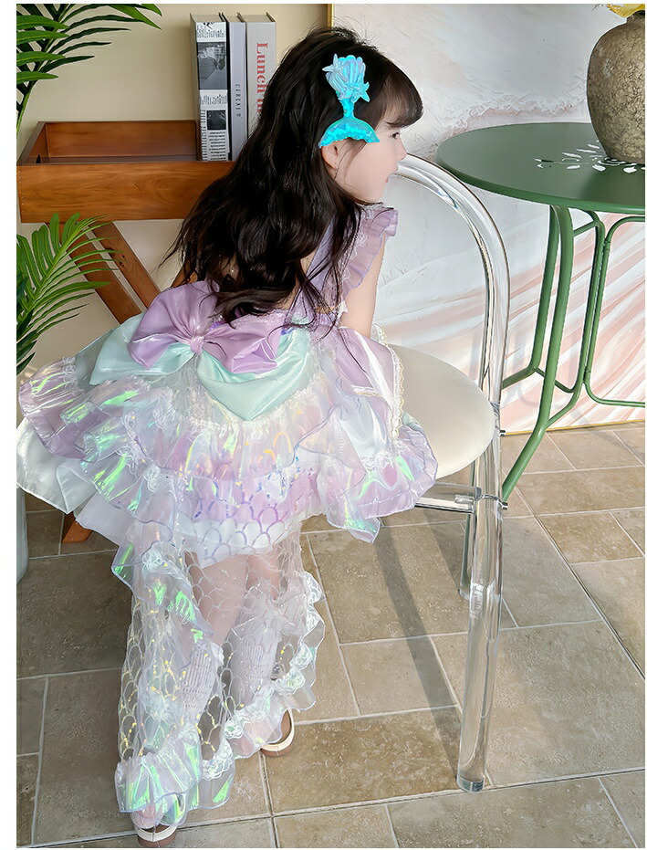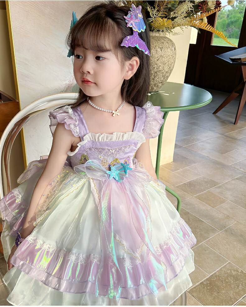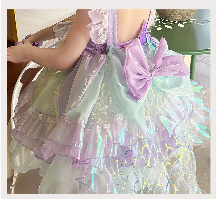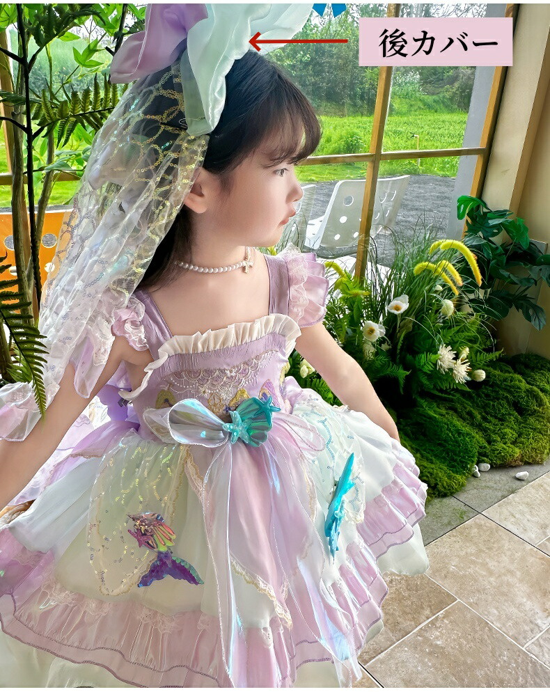 キッズロリータ 後カバー付き 2点セット 人魚姫風 コスプレ 子供ロリータ服 フリル 袖なし リボン ドレス ジャンパースカート 90 100 110 120 130 140 女の子 甘ロリ キッズワンピース