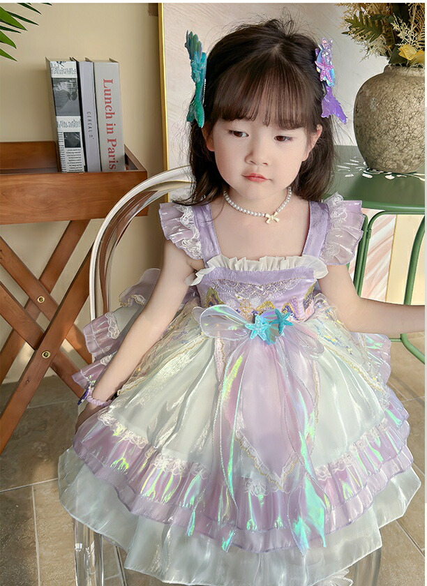 キッズロリータ 蝶結びカバー付き 2way 2点セット 人魚姫風 コスプレ 子供ロリータ服 フリル 袖なし リボン ドレス ジャンパースカート 90 100 110 120 140 女の子 甘 130