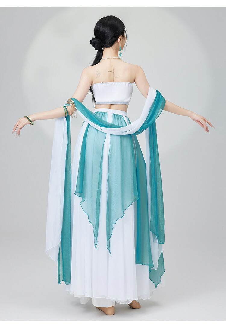 ダンス衣装 ダンスウェア衣装 セット 古典 ステージ衣装 ダンストップス ロングスカート大人用レディース ダンスウェア ベリーダンス練習着ブラウス イベント団体服 演出服 発表会 中華風フレア袖 舞台演出チューブトップ社交ダンス セットアップ 民族風レッスン着エレガント