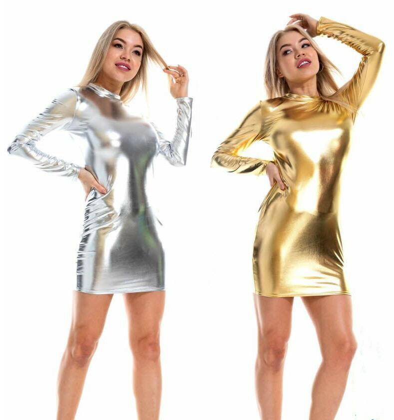 レディースダンス衣装 レザードレス PUドレス ストレッチ 細身ドレス スリム タイトドレス 光沢あり DS 舞台演出服 ステージ衣装 欧米風 セクシーダンス衣装 ハロウィン 文化祭 8色