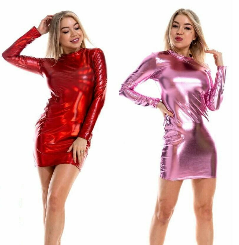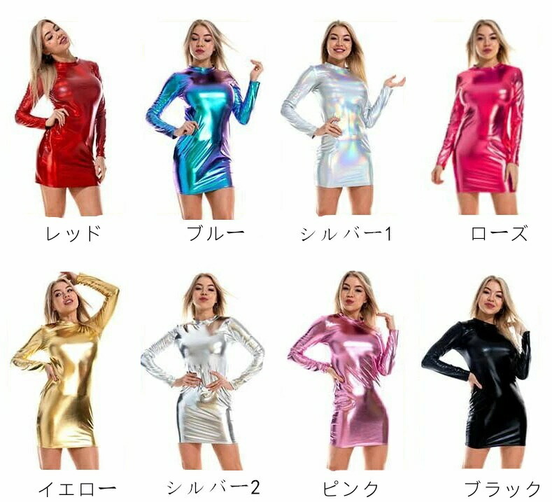 レザードレス ワンピース レディースダ ドレス 新登場! S M L XL XXL イエロー シルバー1 シルバー2 レッド ブラック ブルー ローズ ピンク