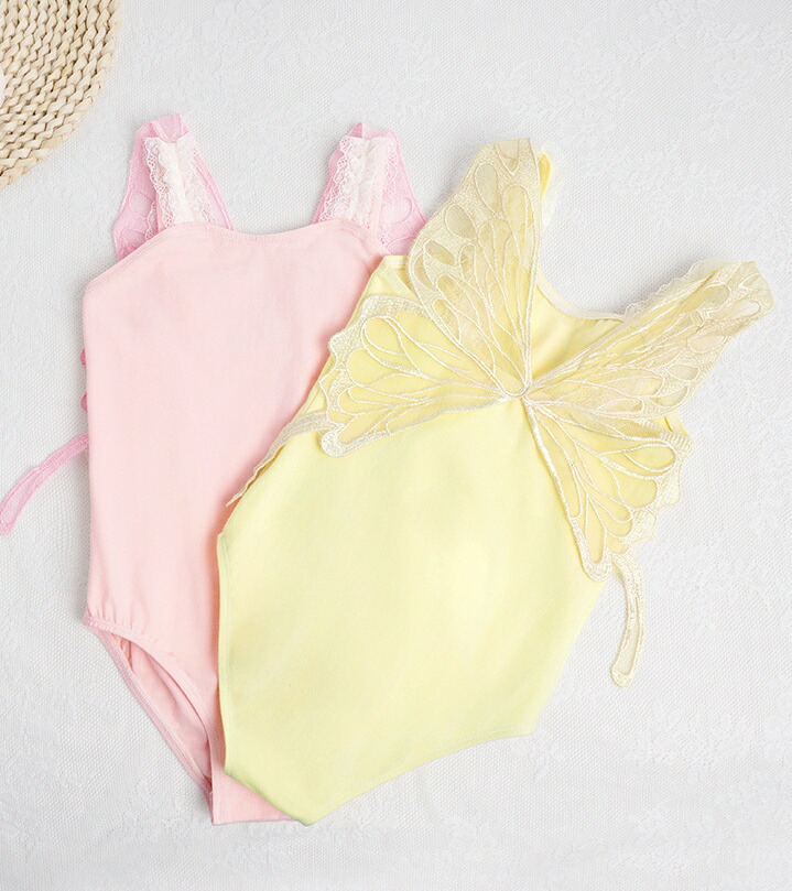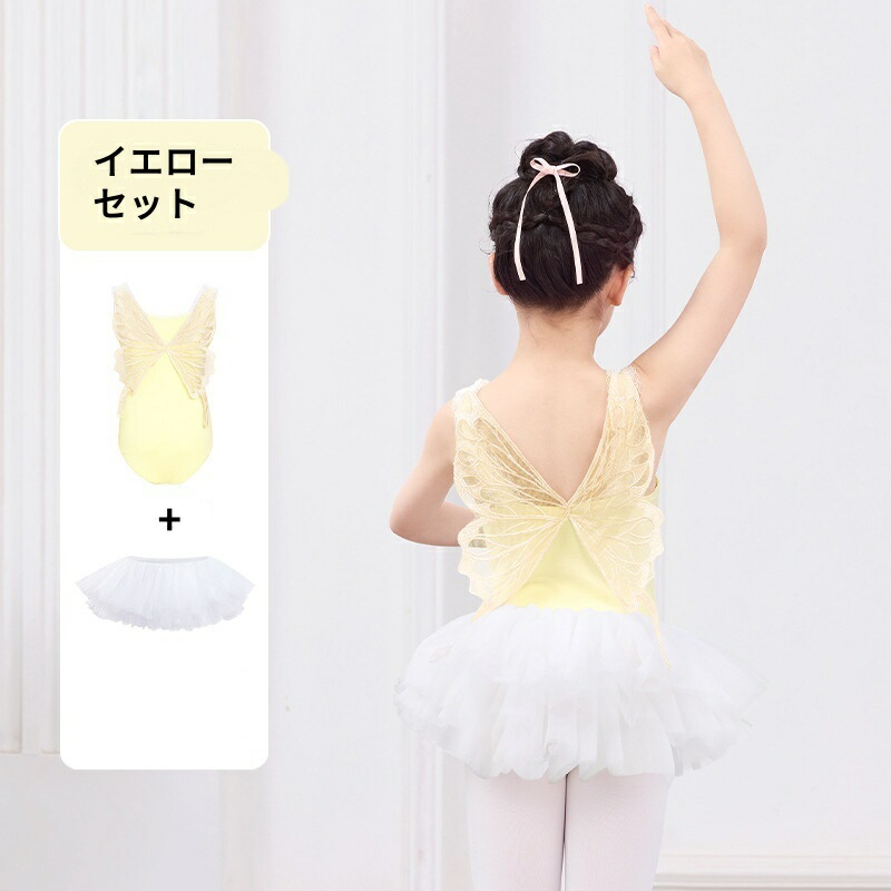 子供バレエレオタード 袖なしレオタード 2点セット スカート選択可 バレエ用品 女の子バレエウェア キッズ 蝶 レオタード ノースリーブ 発表会 ダンス稽古 胸パッド挿入可 レッスン着 教室 ダンスコンクール オーディション 股の部分ホック付き ピンク イエロー 110-170