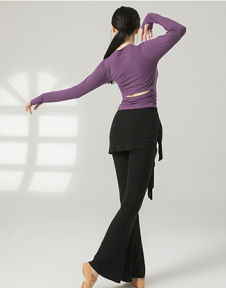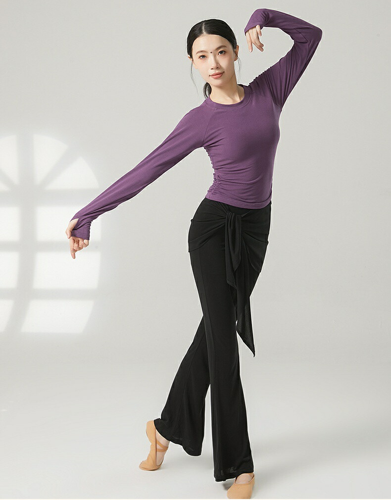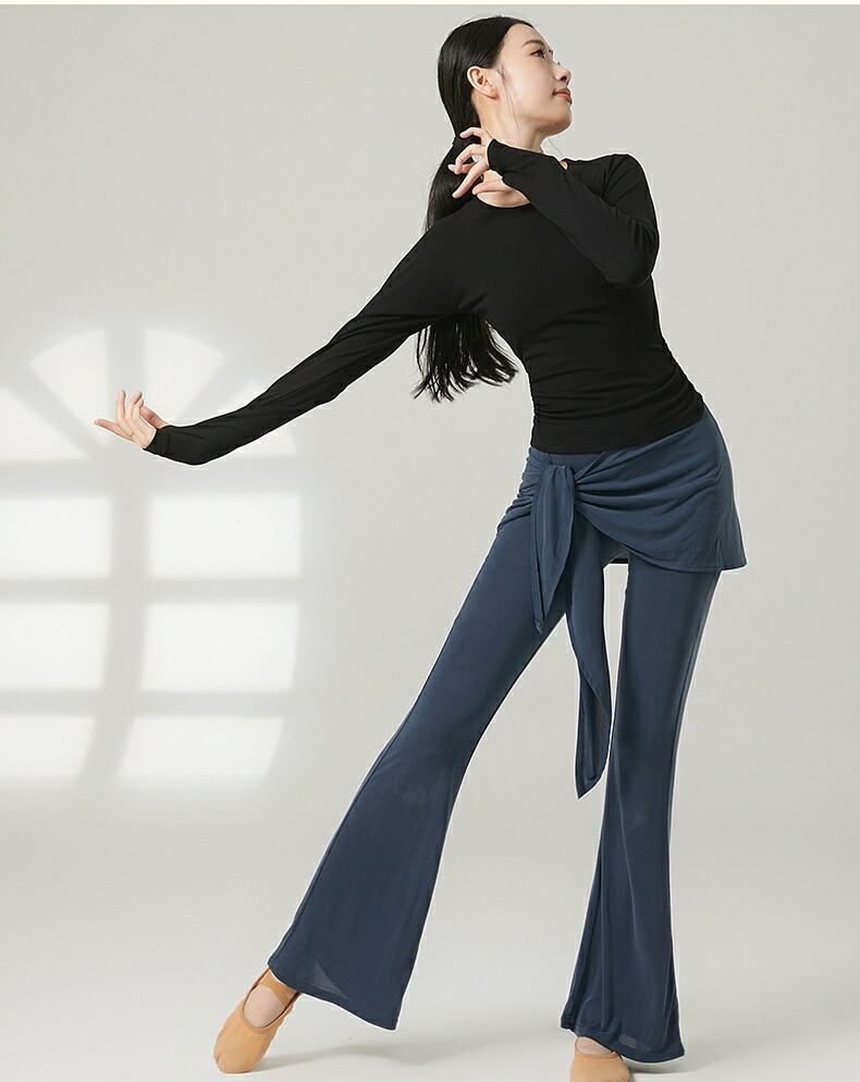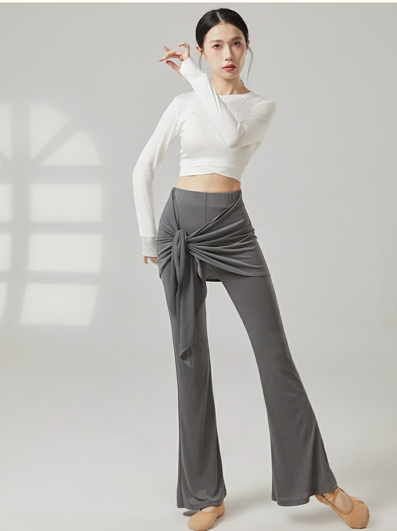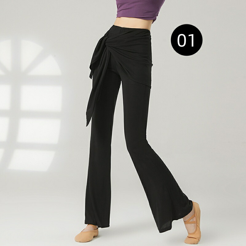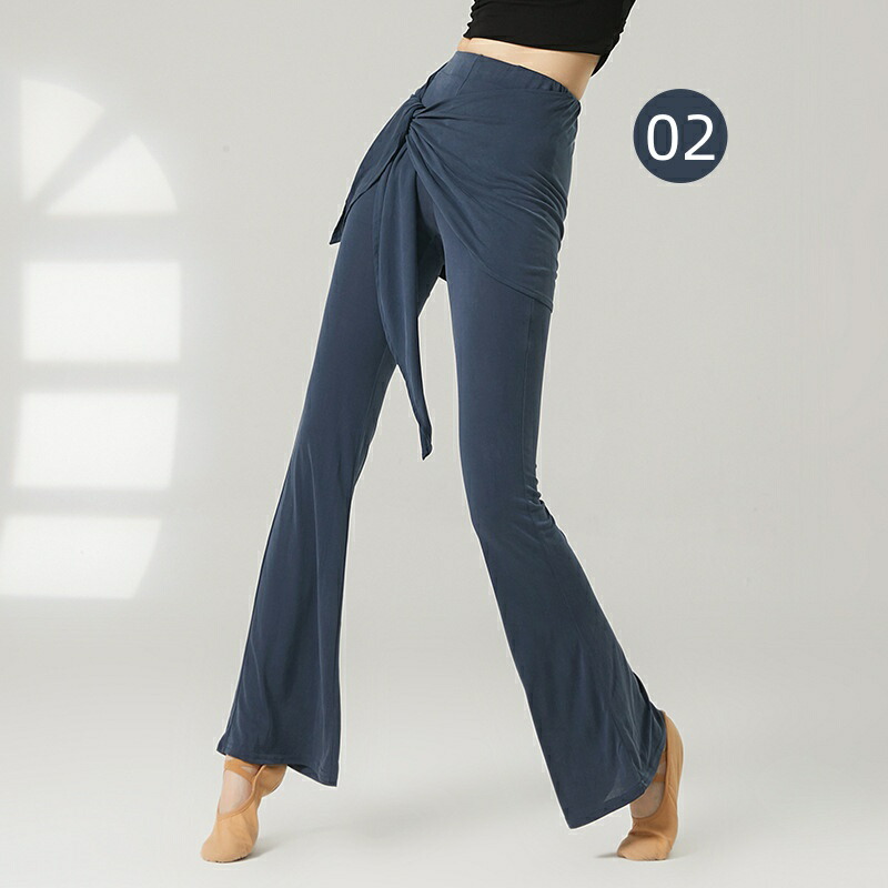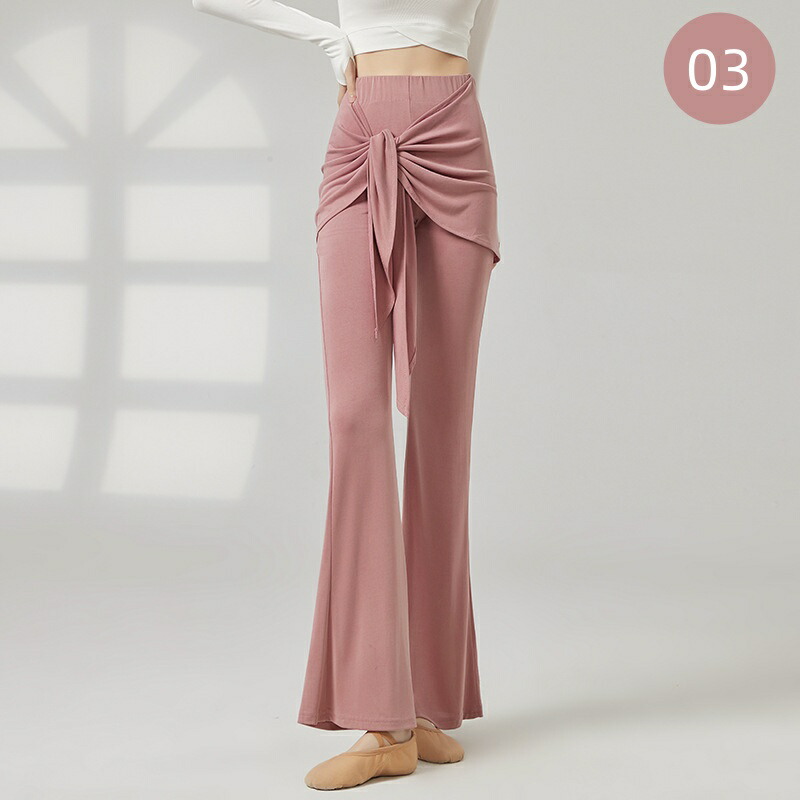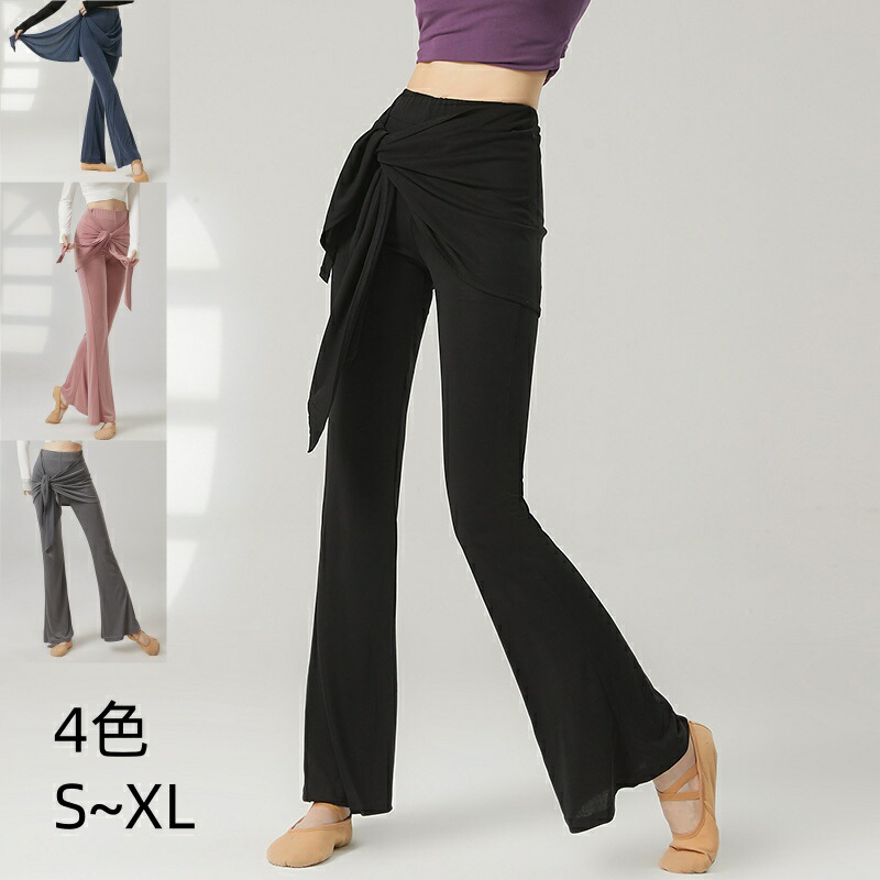 ダンスパンツ フェイクツーウェイ タイアップ付き マイクロベルボトム モーダル ヨガパンツ 女性用 ラテンダンス ロングパンツ ハイウエスト ヒップホールド 中国風 リラックスヨガ 細見え ス ズボン