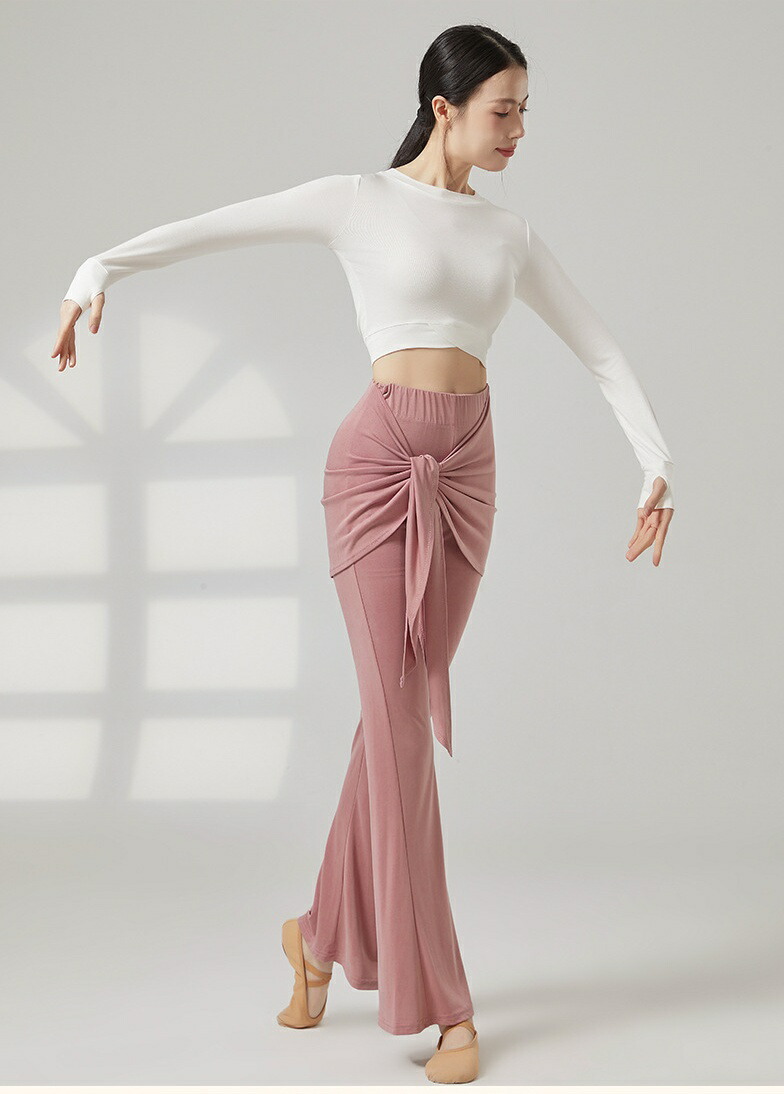 ダンスパンツ フェイクツーウェイ・タイアップ付き マイクロベルボトム ヨガパンツ 女性用 ラテンダンス ロングパンツ ハイウエスト ヒップホールド
