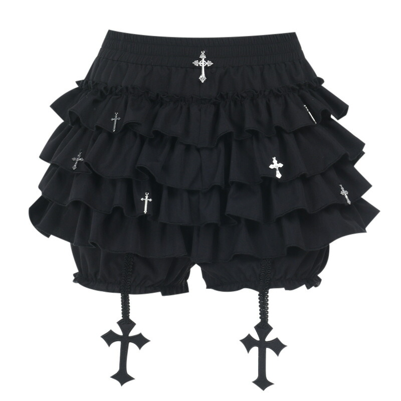 ボディコンケーキスカート 十字架チェーンチャーム付き 防透けショートパンツ トップス追加でき 2点セット ストリートギャル アゲ嬢 パンク風 ゴシック風 ギャル系 ロック ハロウィンパーティー 原宿系