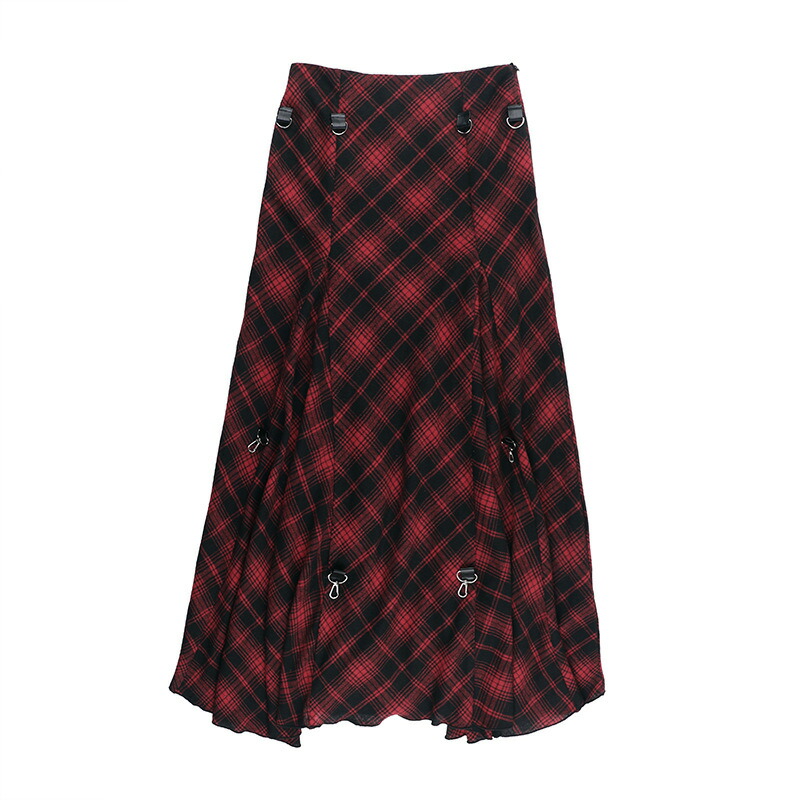 商品詳細 赤不規則チェックスカート 調節可能ベルト ヴィジュアル系再現 スカート