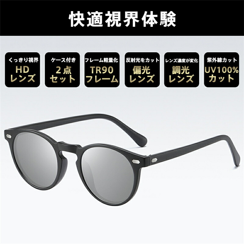 サングラス メンズ 偏光 調光 偏光サングラス 自動調光 軽量 レディース UVカット ケース付き ドライブ 釣り 運転 スポーツサングラス