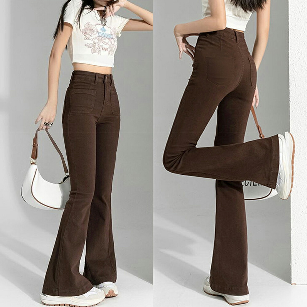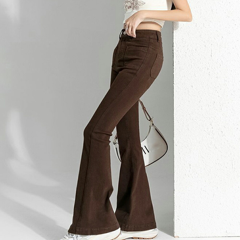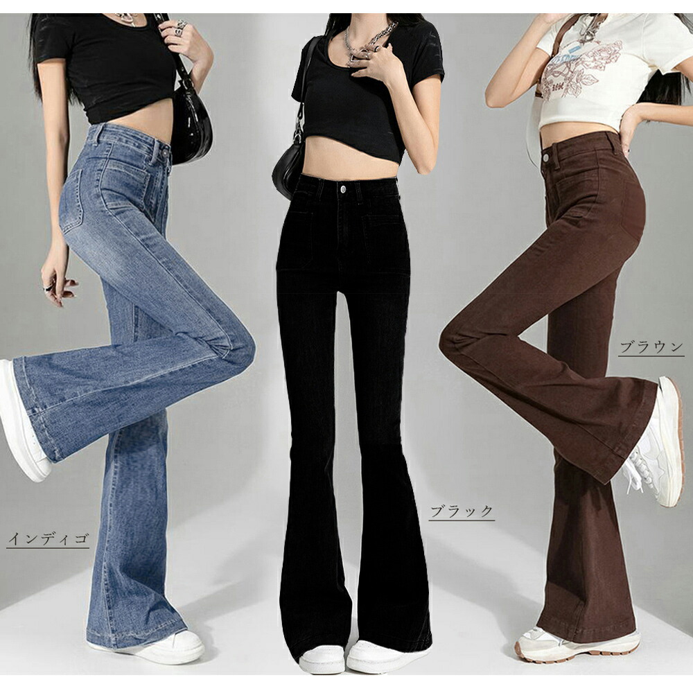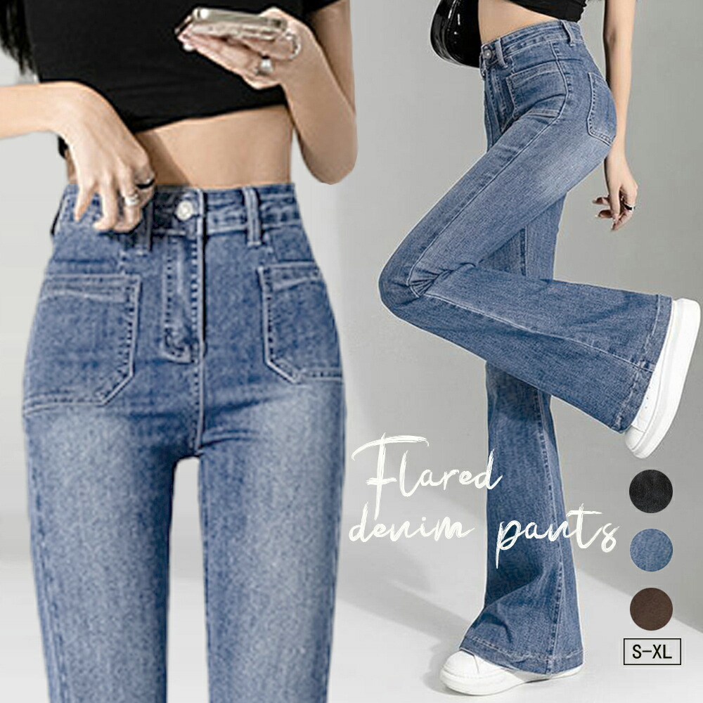 フレアデニムパンツ セミフレアパンツ韓 レディースファッション 超目玉商品 インディゴ ブラウン ブラック L M S XL