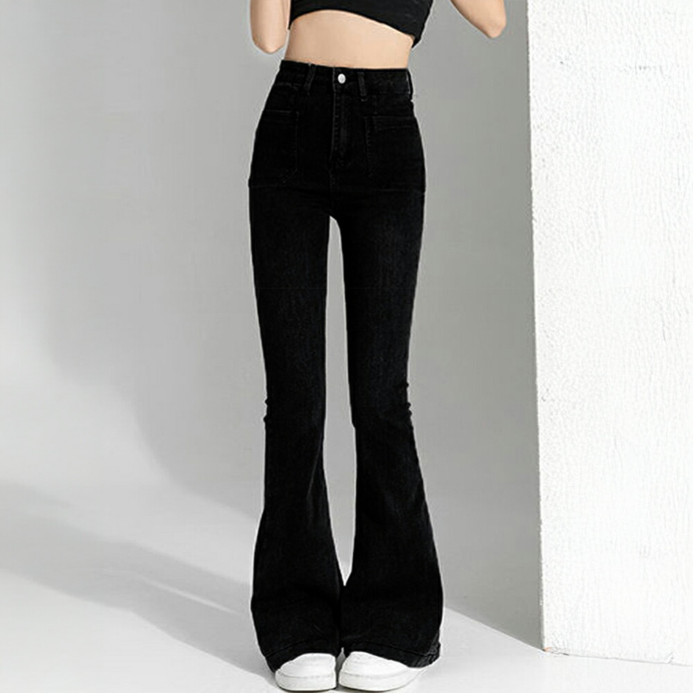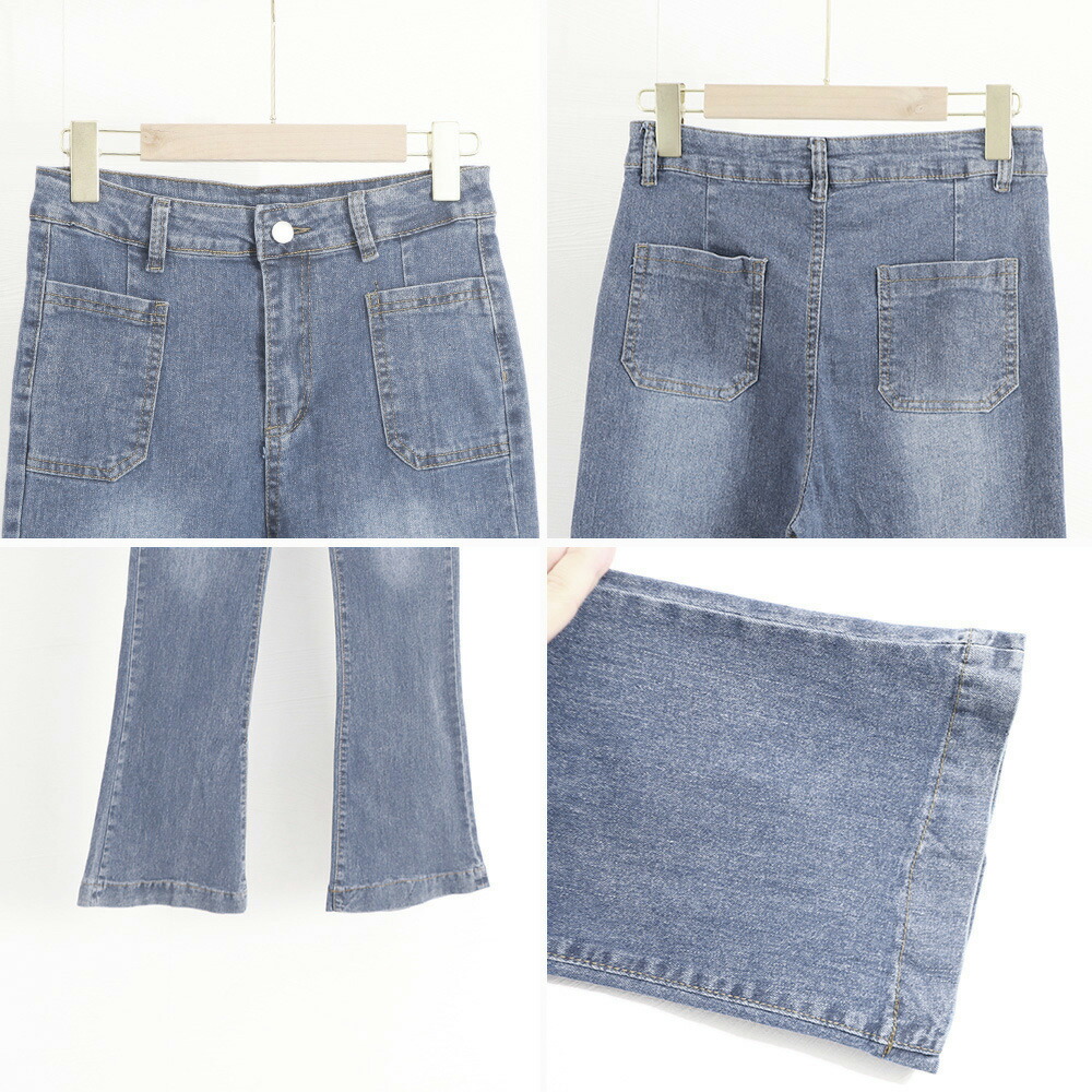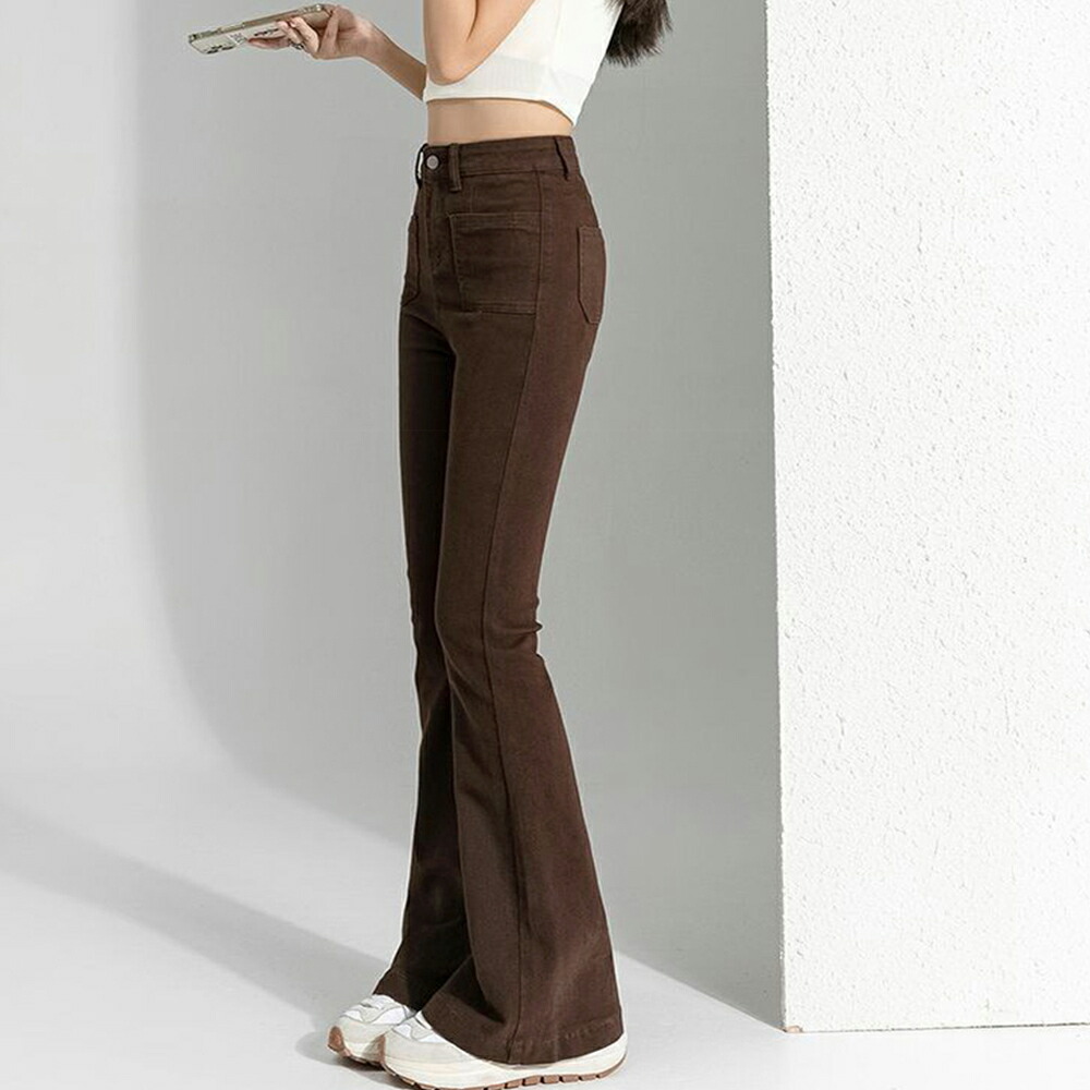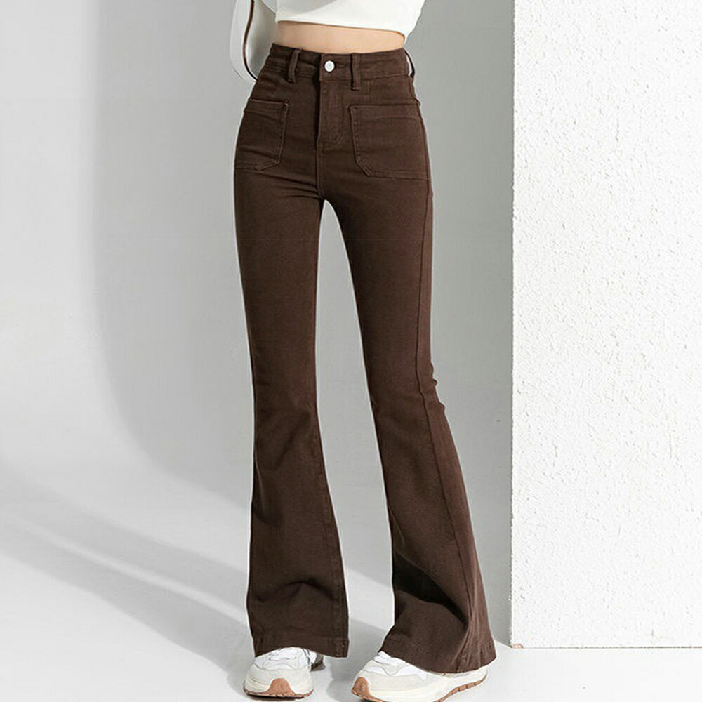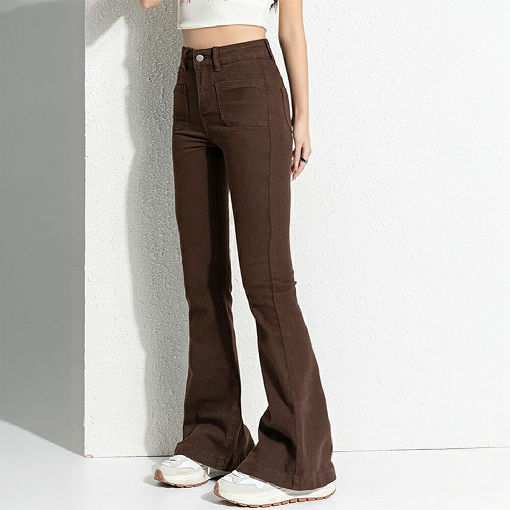 フレアデニムパンツ セミフレアパンツ韓 レディースファッション 超目玉商品 インディゴ ブラウン ブラック L M S XL