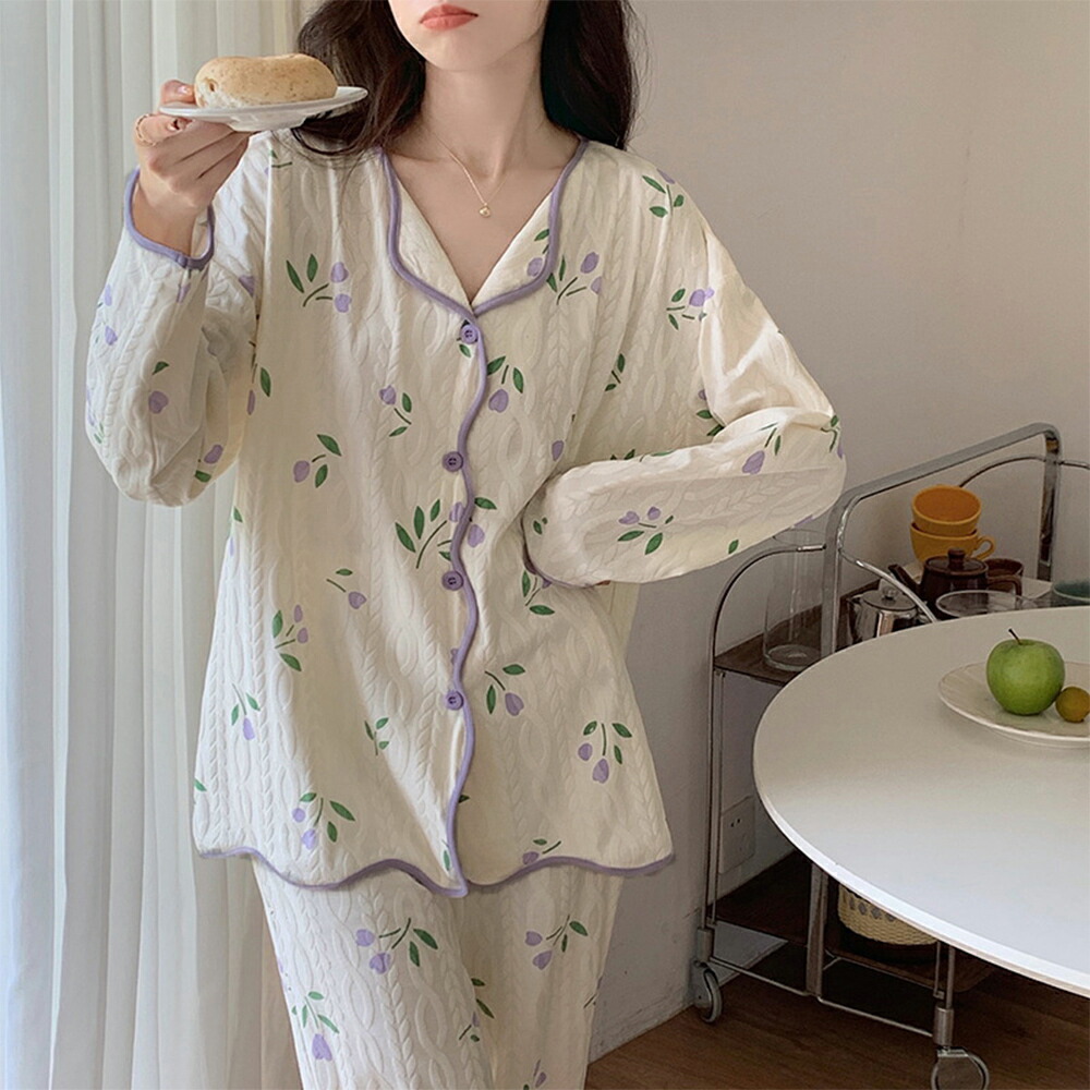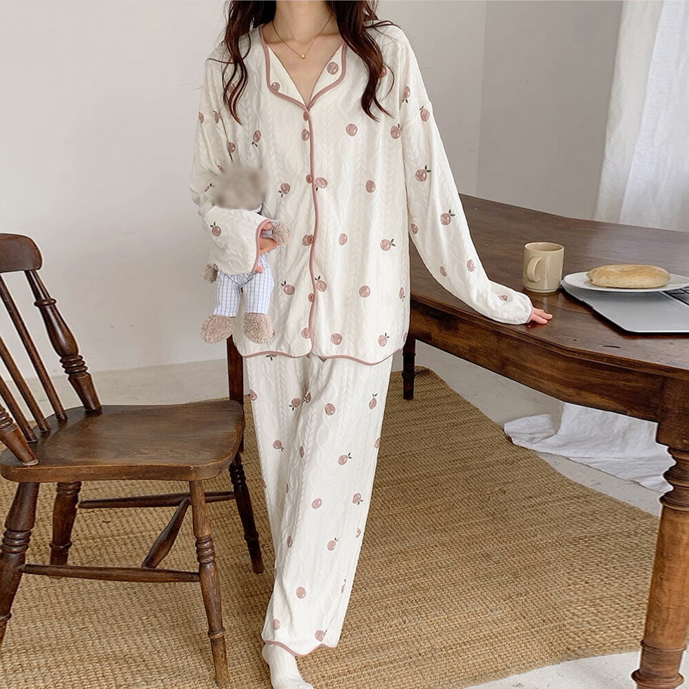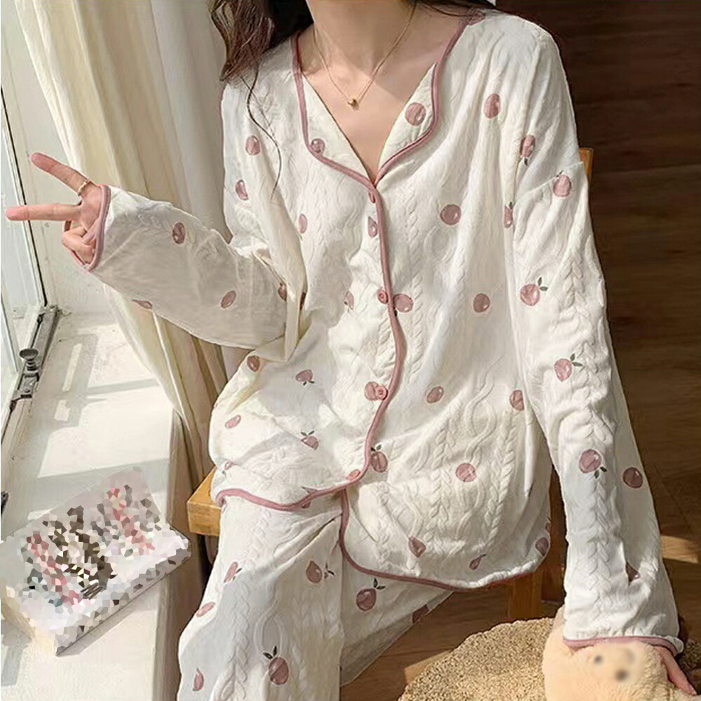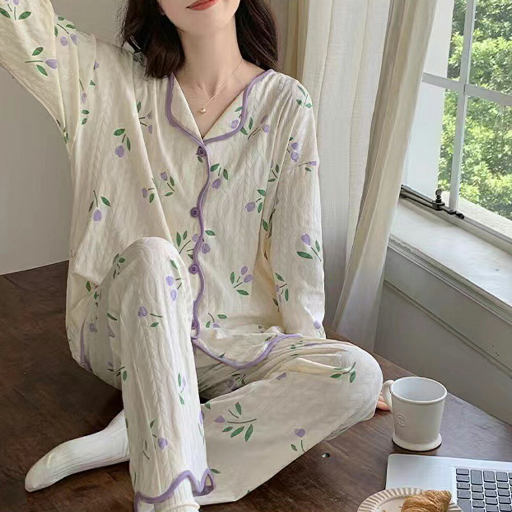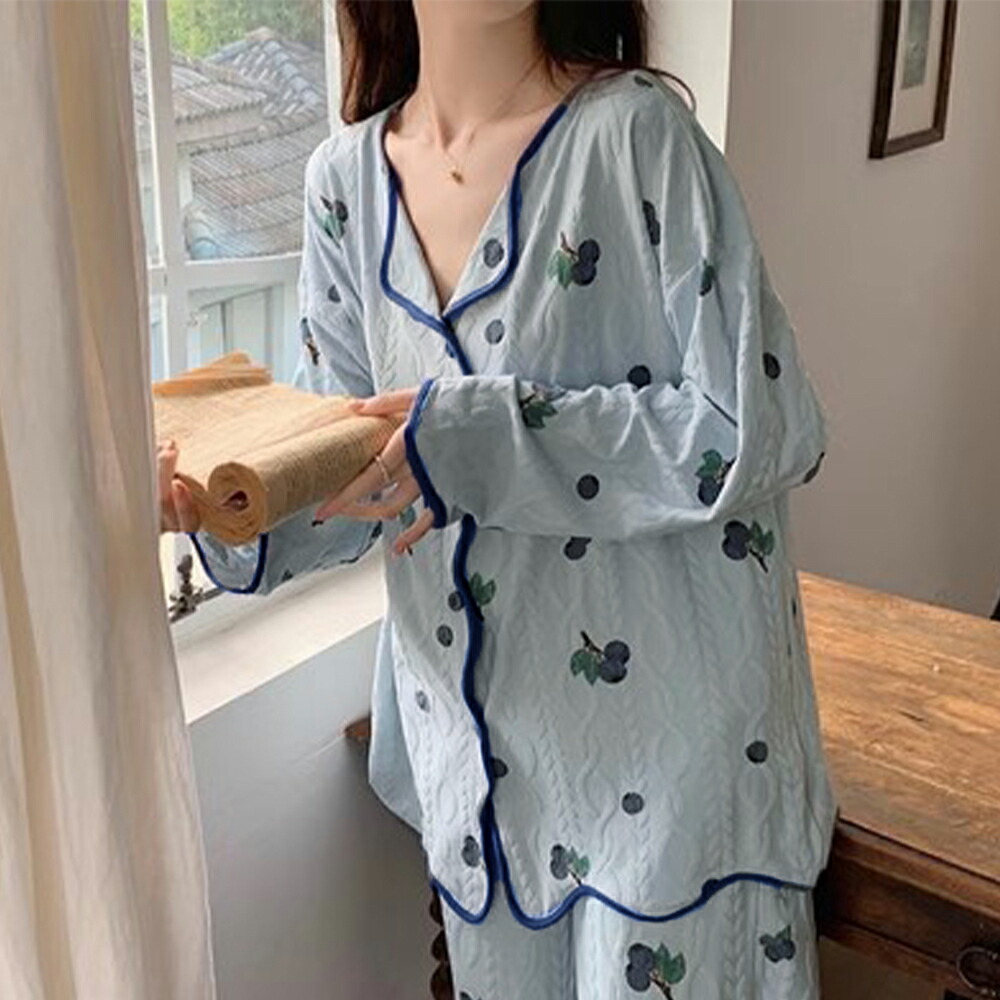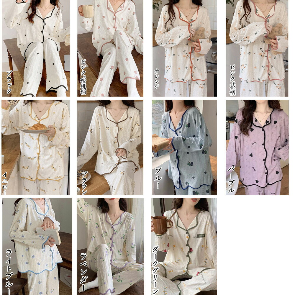 韓国パジャマ レディース 部屋着薄手長 インナー 下着 ナイトウエア 続々登場 イエロー オレンジ ダークグリーン パープル ピンク*桜桃柄 ピンク*花柄 ブラウン ブラック ブルー ライトブルー ラベンダー