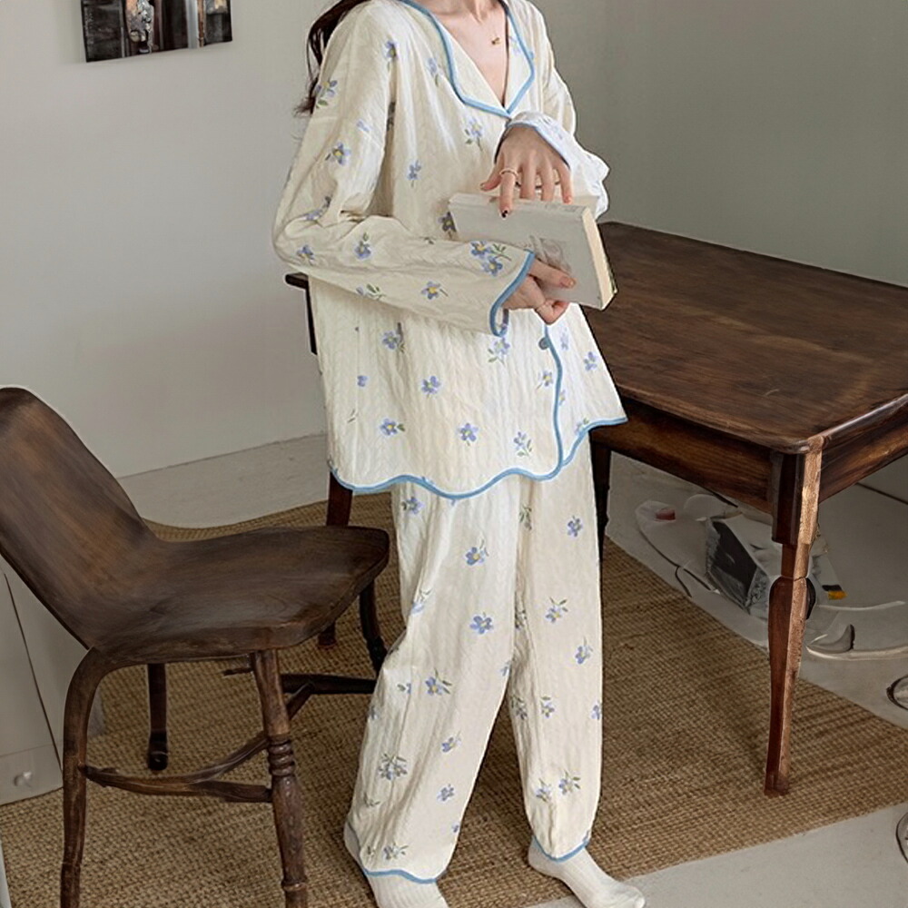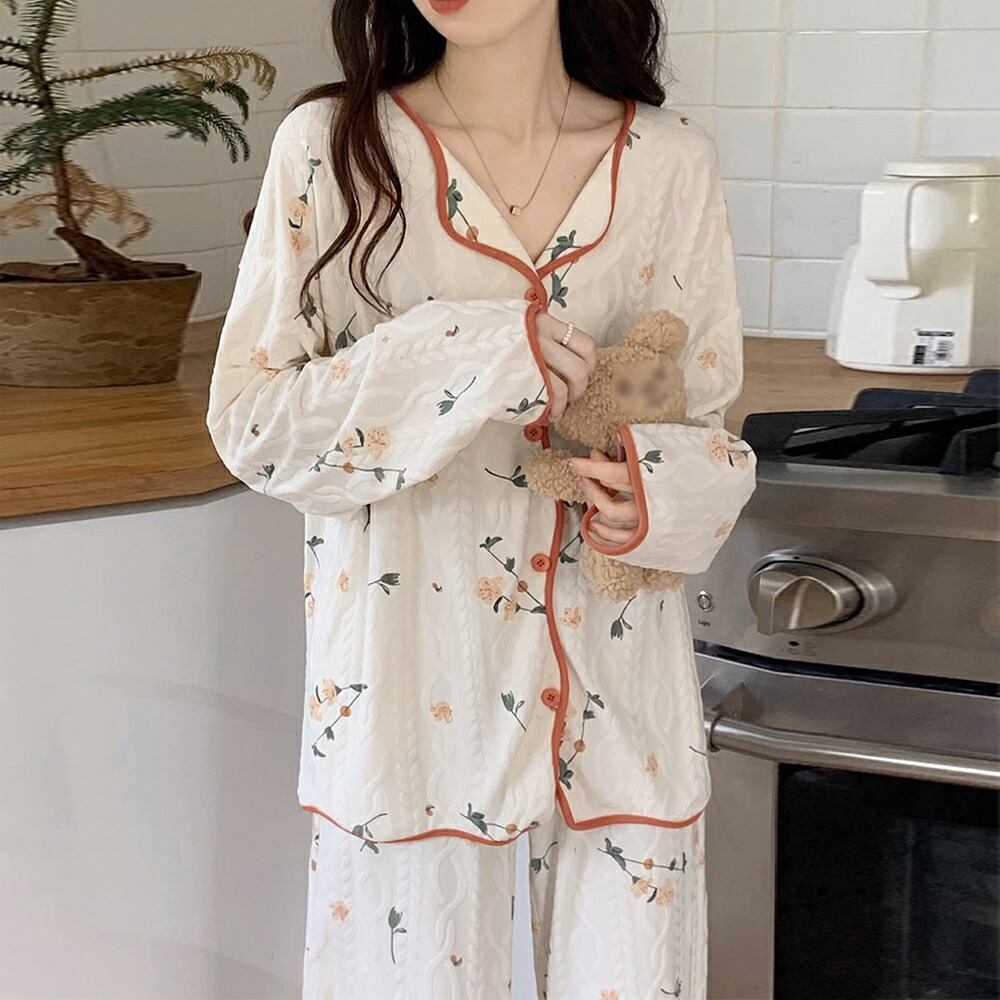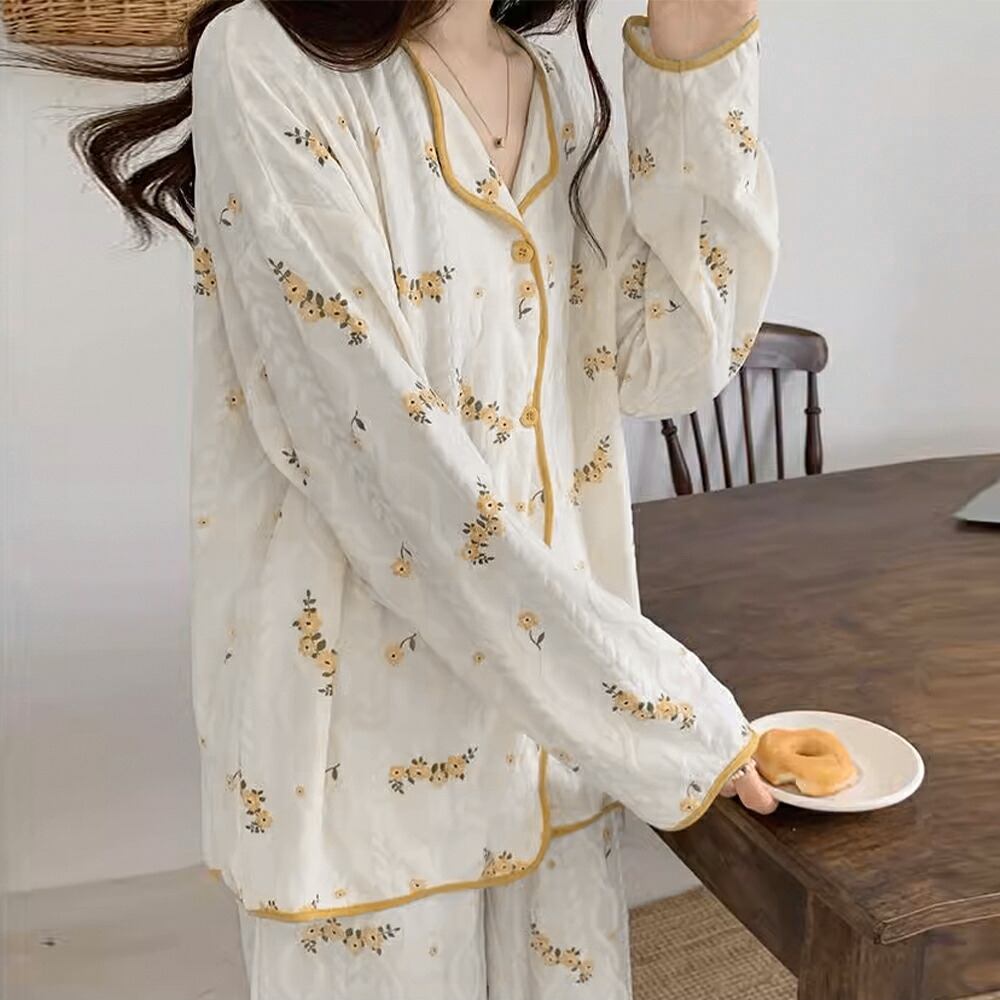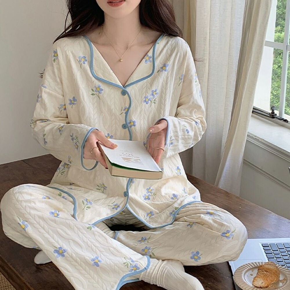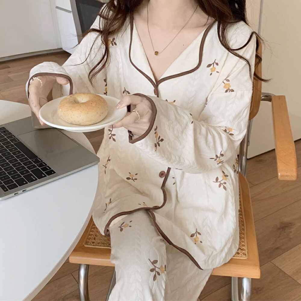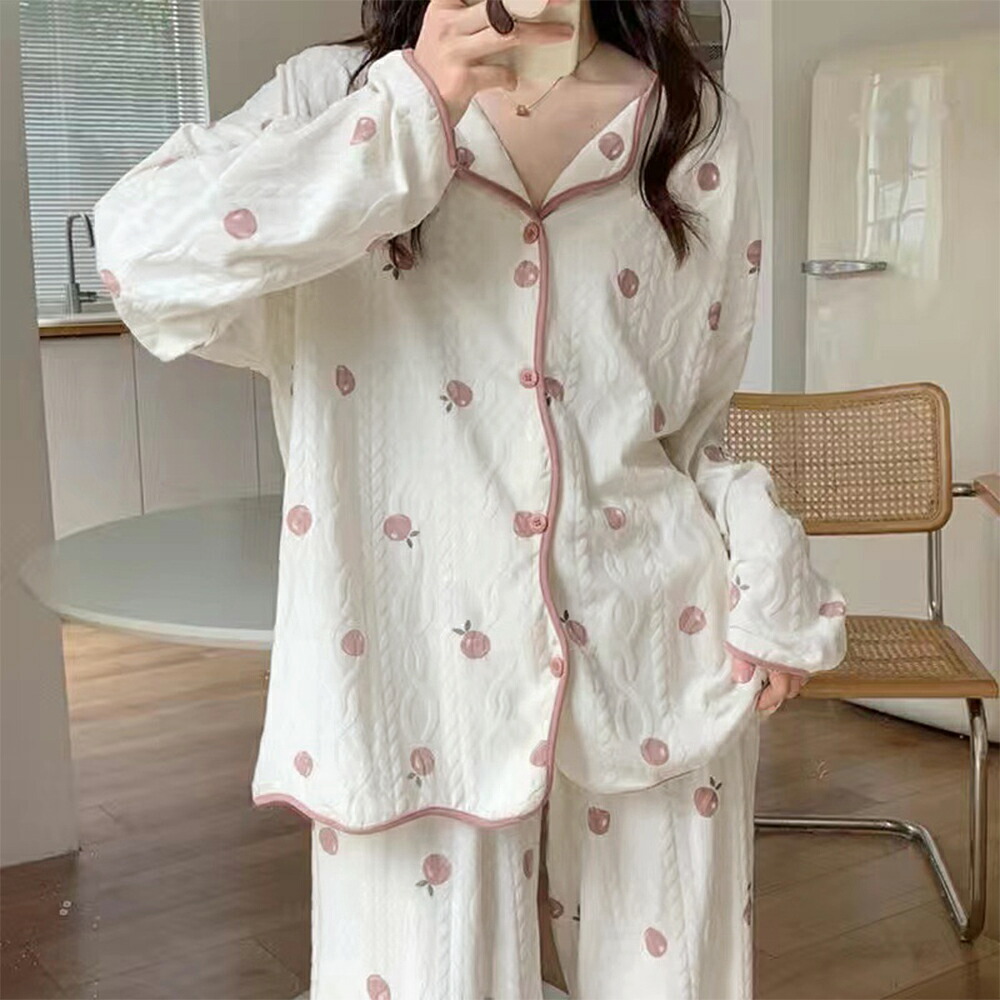 韓国パジャマ レディース 部屋着薄手長 インナー 下着 ナイトウエア 続々登場 イエロー オレンジ ダークグリーン パープル ピンク*桜桃柄 ピンク*花柄 ブラウン ブラック ブルー ライトブルー ラベンダー