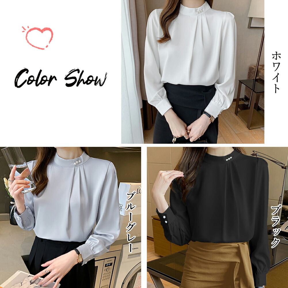 ブラウスフォーマル レディース 長袖上 トップス シャツ ブラウス 新登場! ブラック ブルーグレー ホワイト L M XL