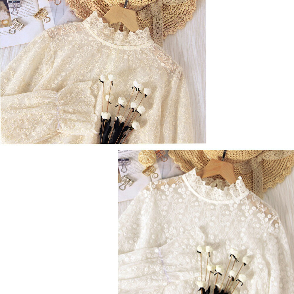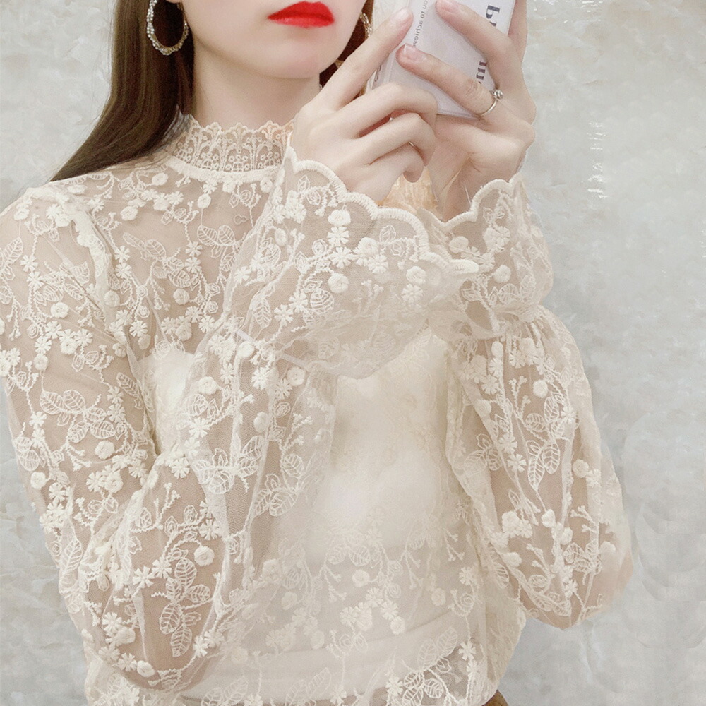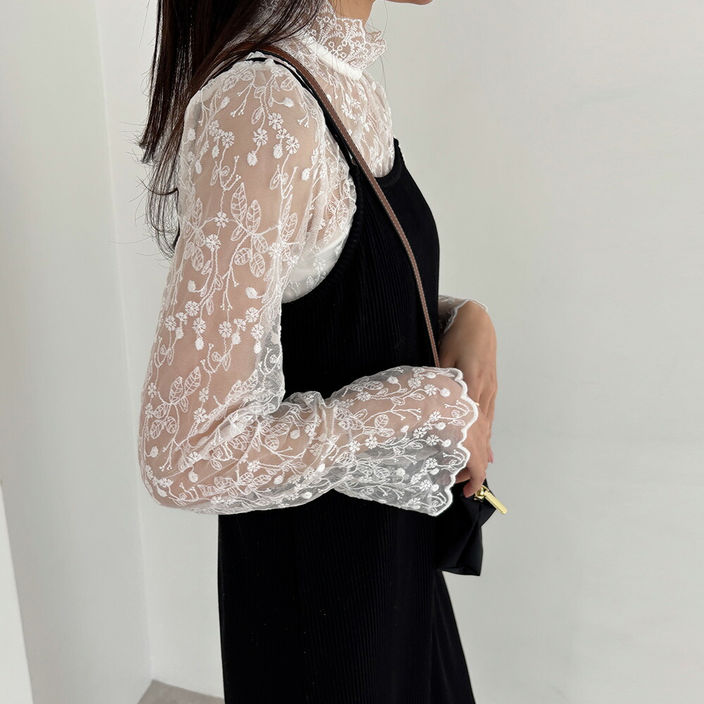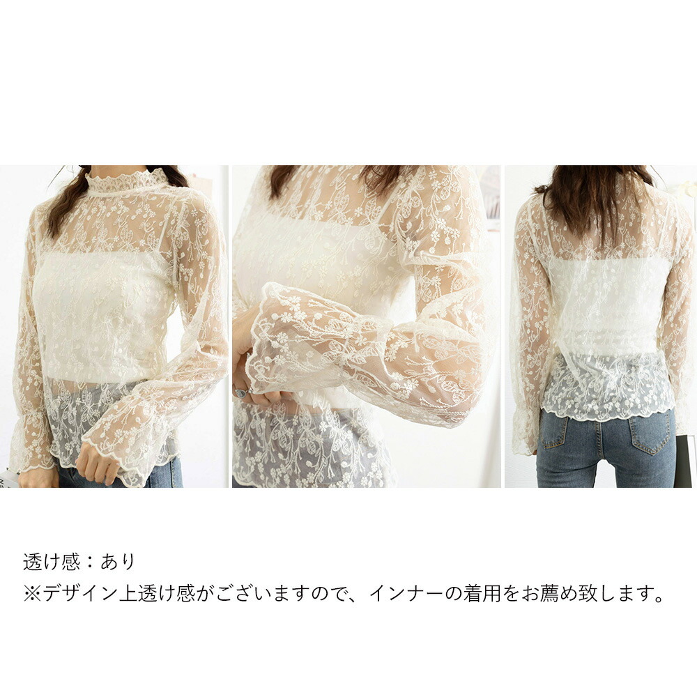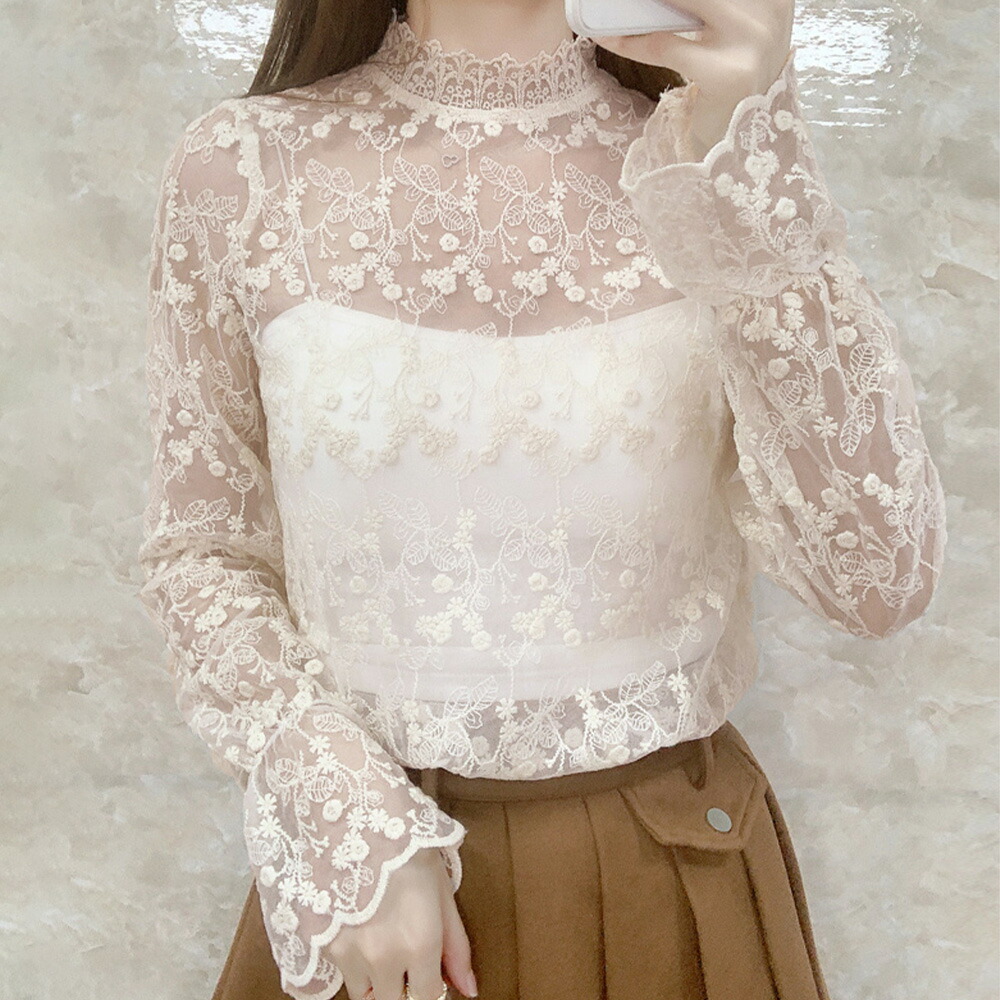 花柄刺しゅうレースブラウス長袖レディー トップス シャツ ブラウス 超目玉商品 ブラック ベージュ ホワイト L M