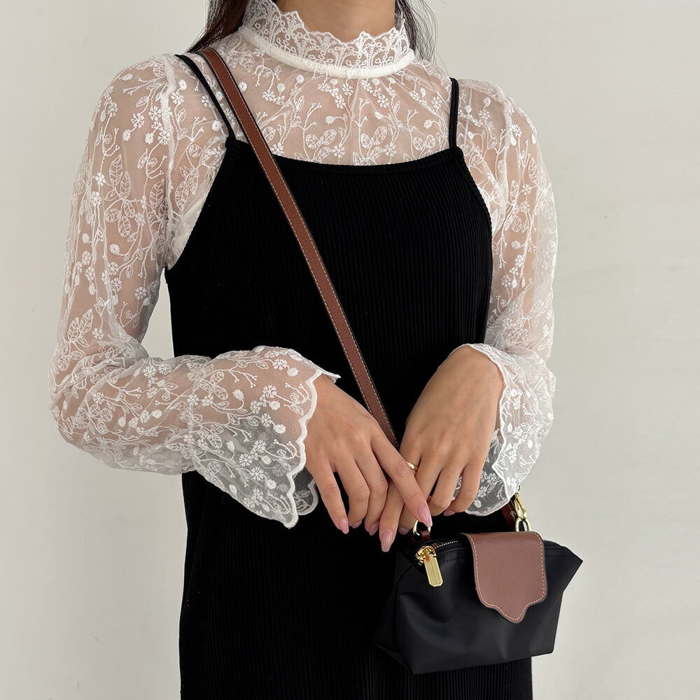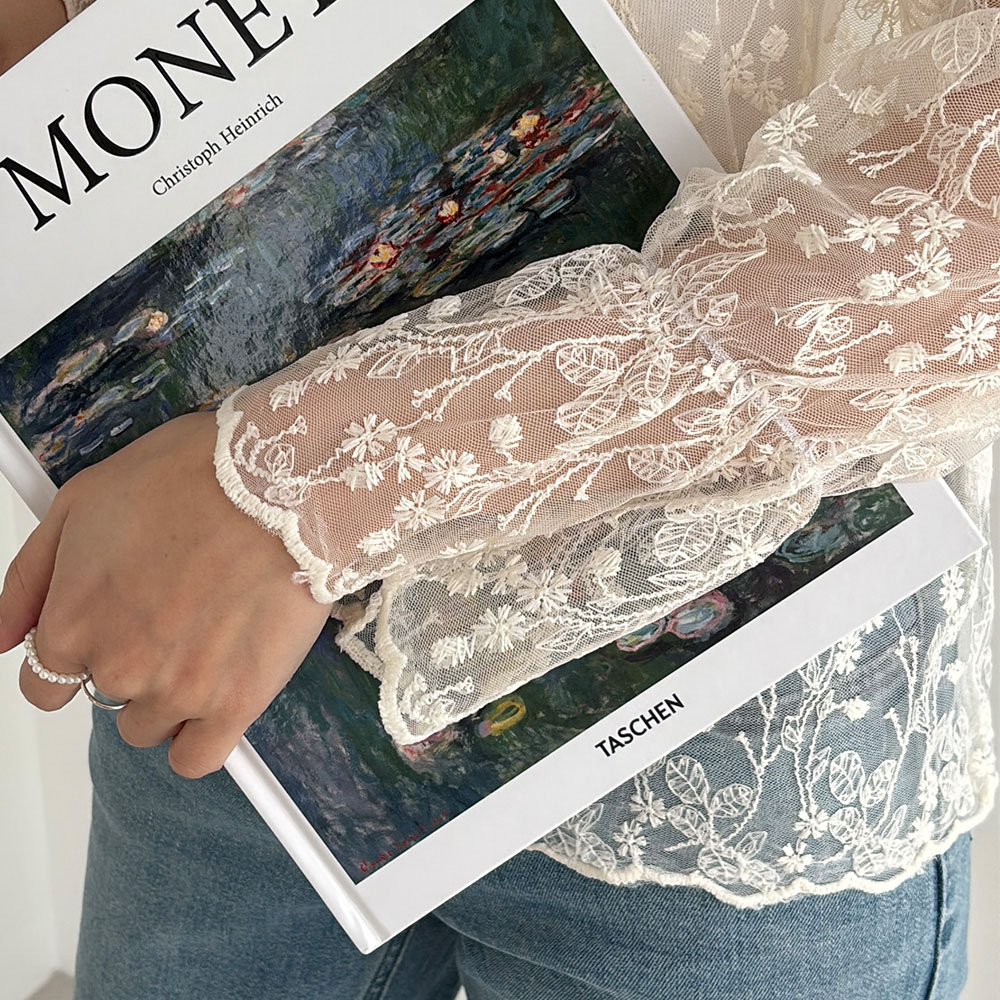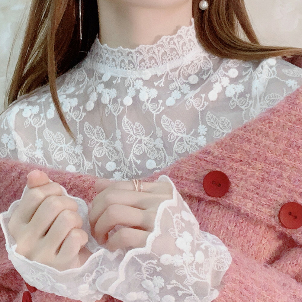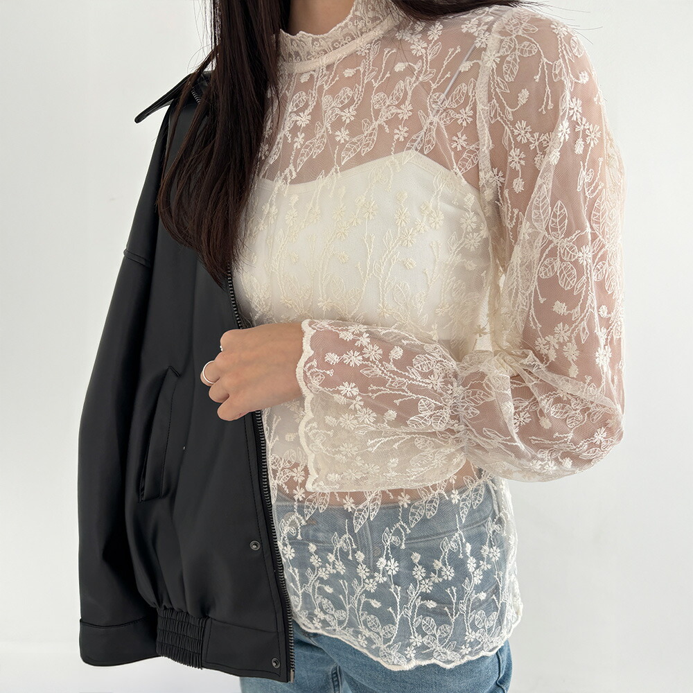 花柄刺しゅうレースブラウス長袖レディー トップス シャツ ブラウス 超目玉商品 ブラック ベージュ ホワイト L M