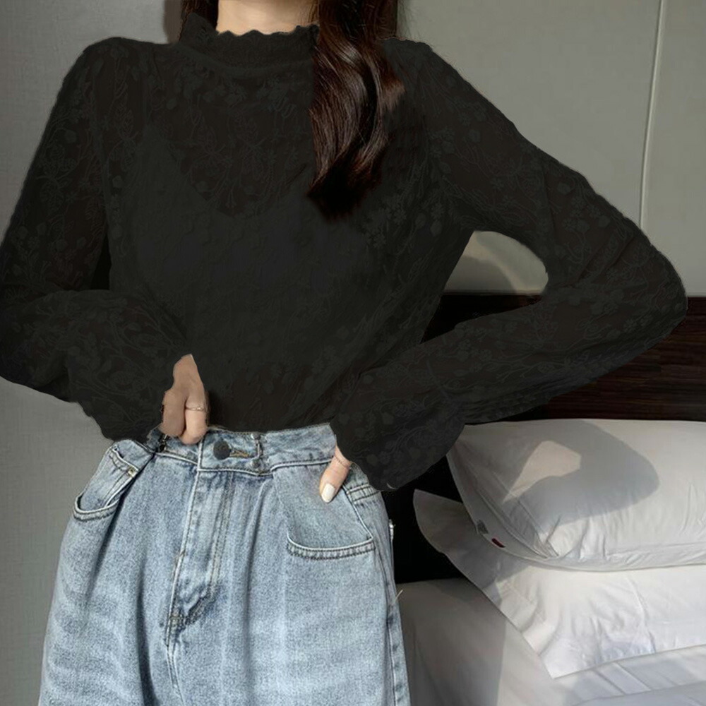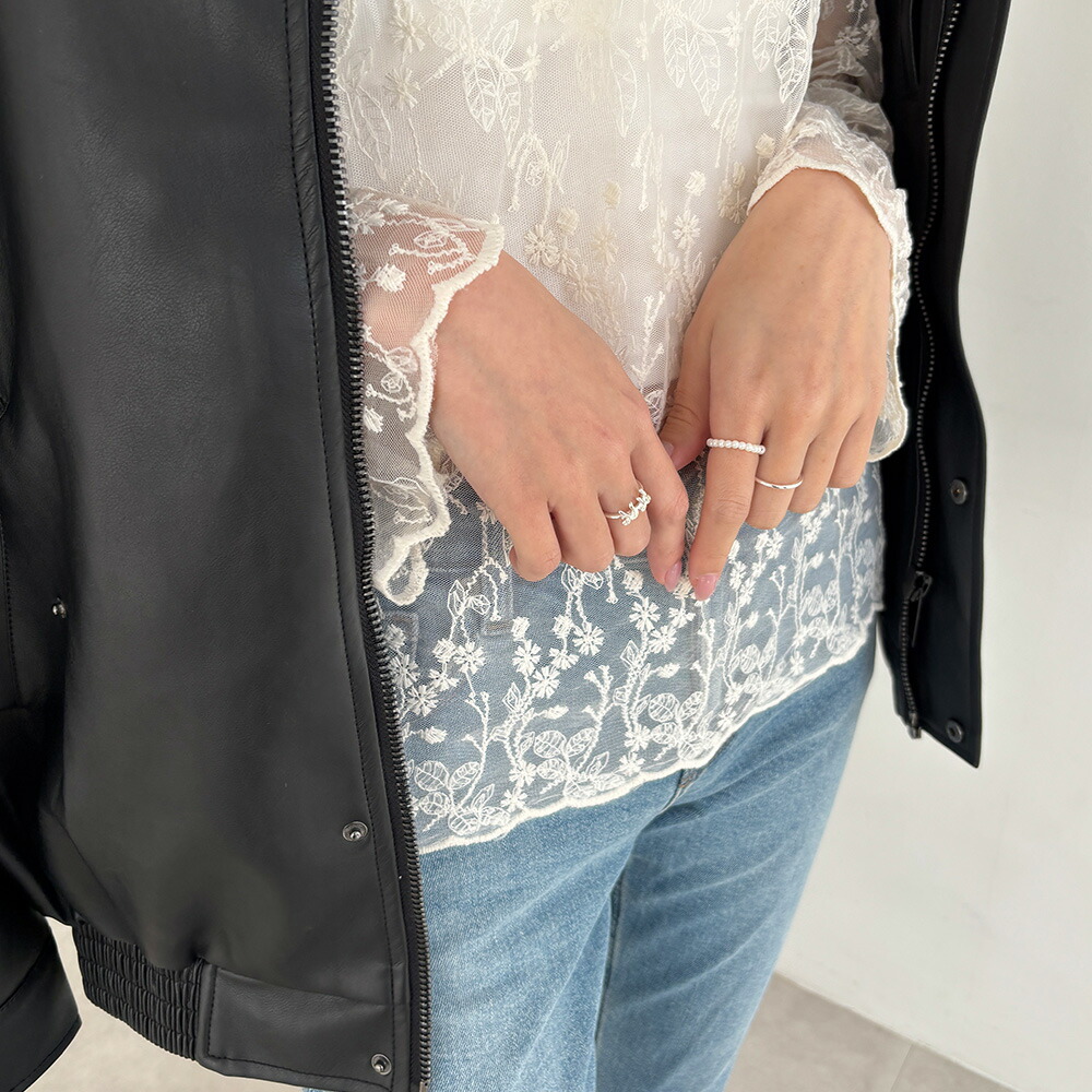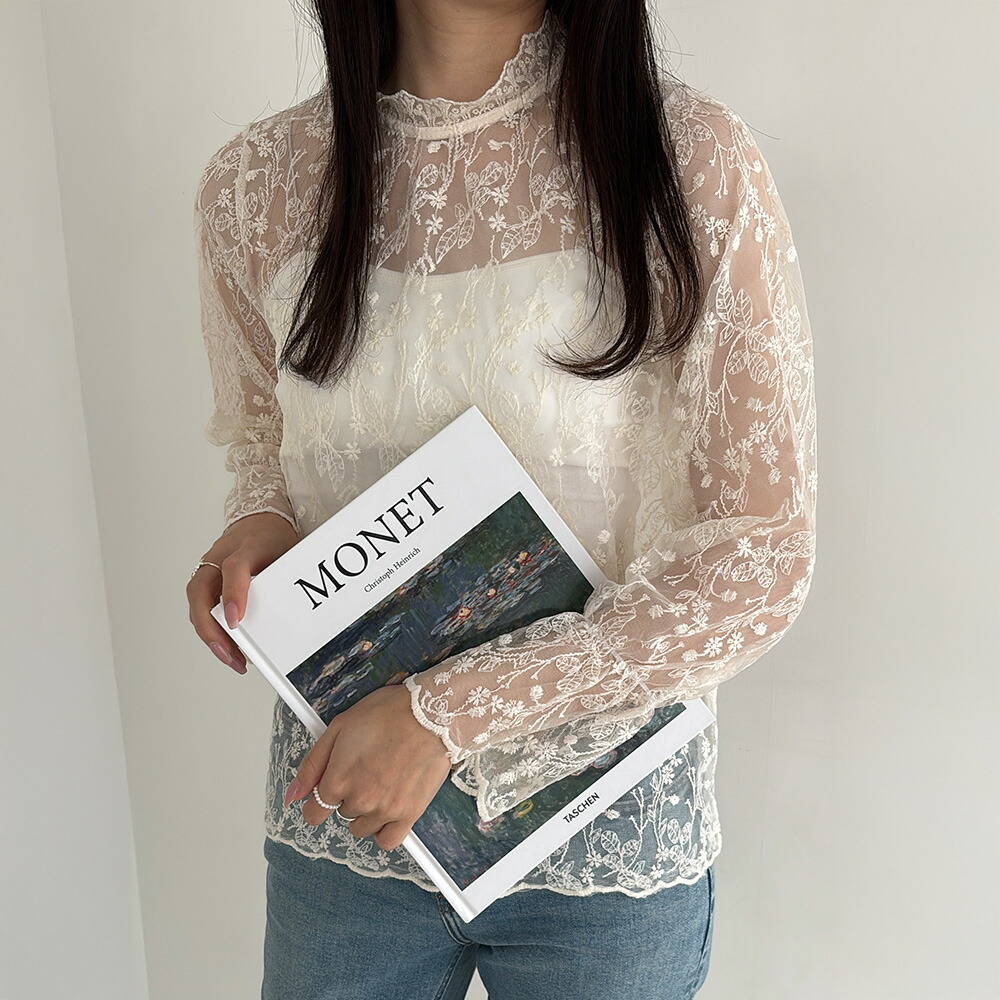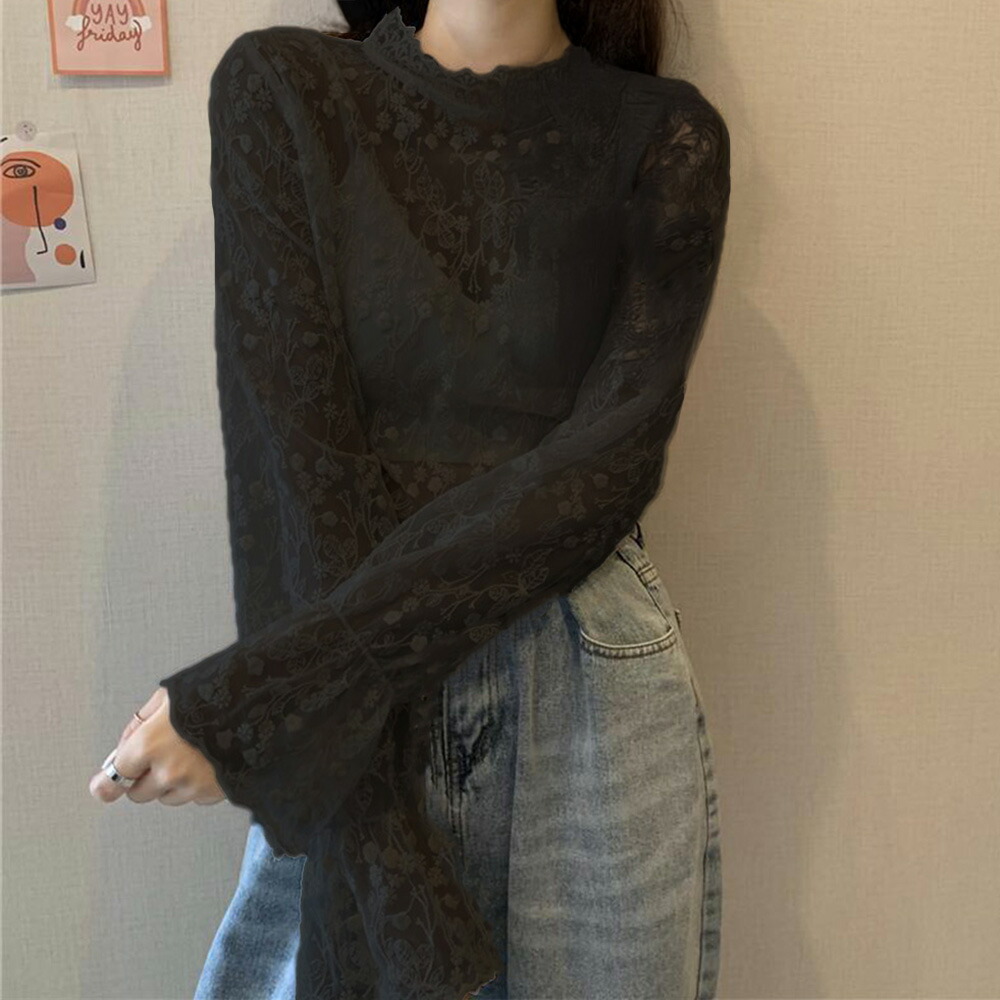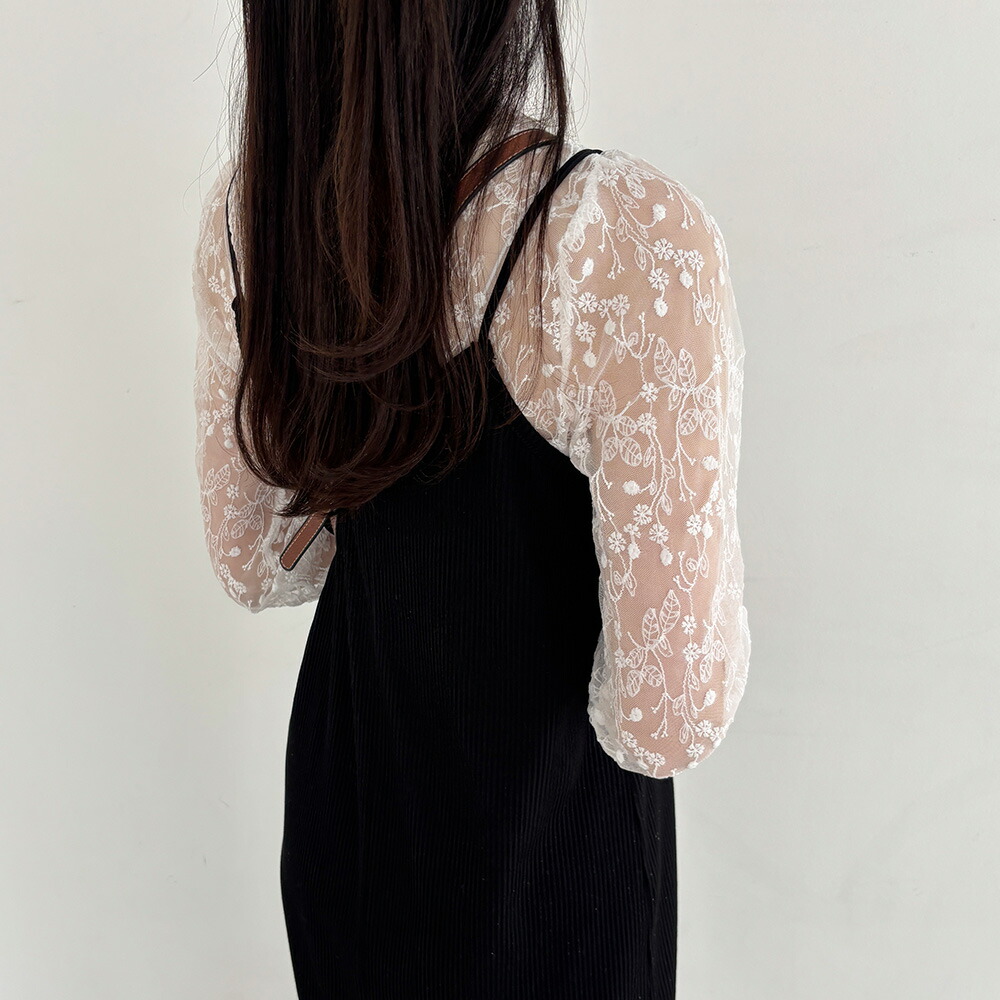 花柄刺しゅうレースブラウス長袖レディー トップス シャツ ブラウス 超目玉商品 ブラック ベージュ ホワイト L M