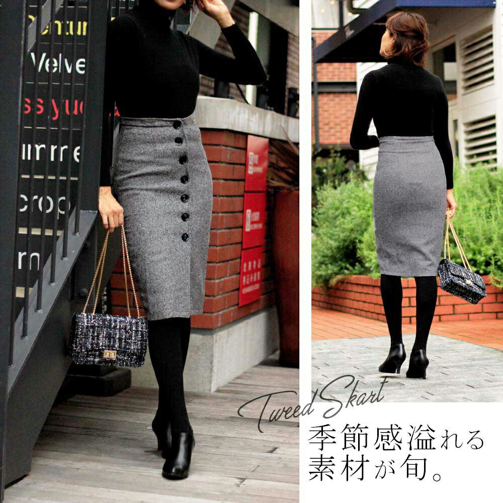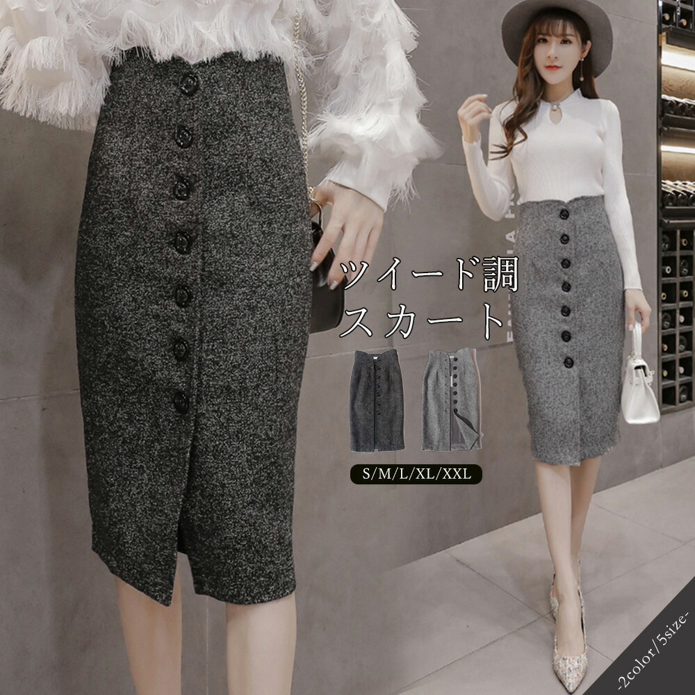 ツイード調スカート 秋冬ペンシルスカー ボトムス スカート 特集 グレー ブラック L M S XL XXL