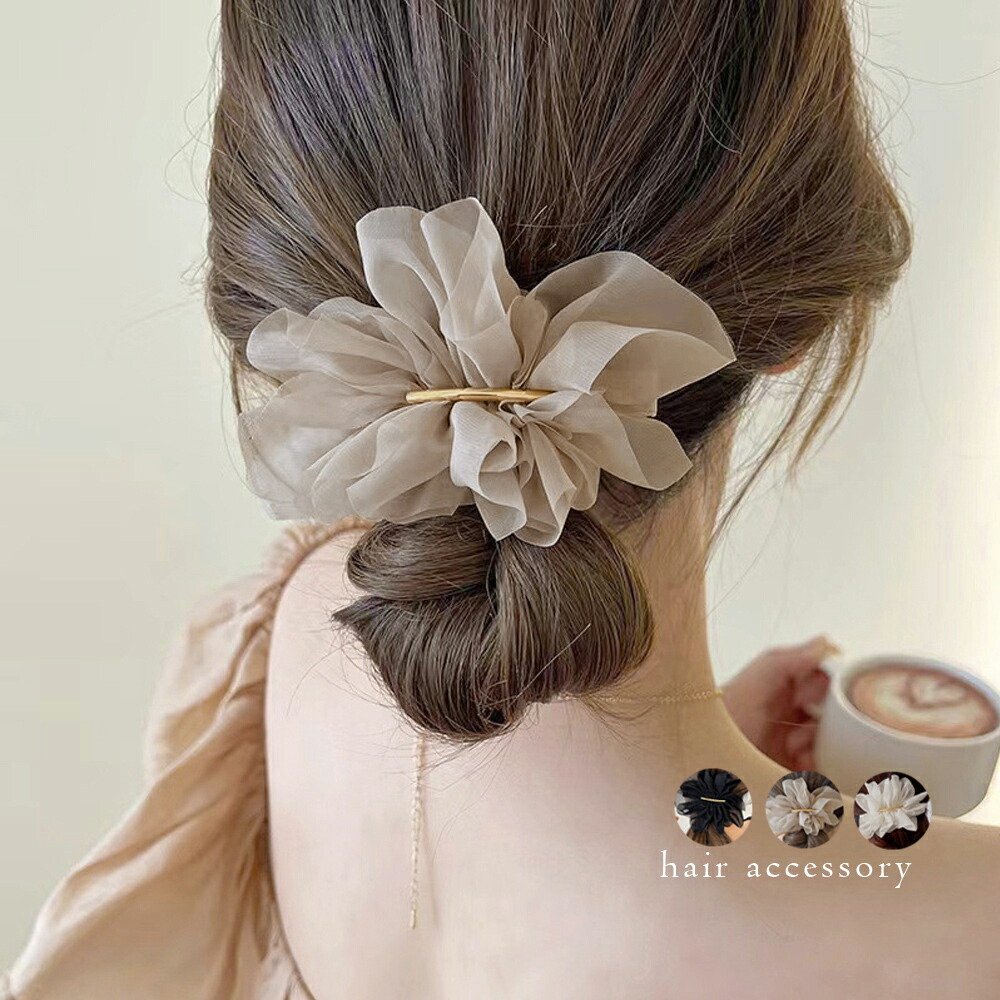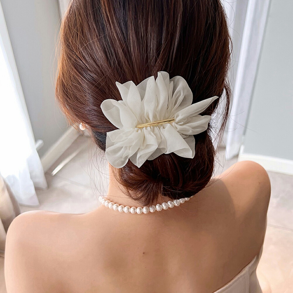 シフォンバレッタ レディースヘアアレン ジュエリー アクセサリー 豊富 ブラック ベージュ ホワイト