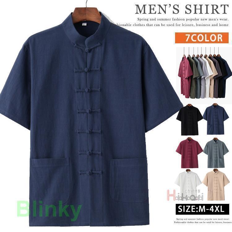 半袖シャツ チャイナシャツ メンズ チャイナ風 カンフーシャツ ブラウス スタンドカラー シャツ おしゃれ カジュアルシャツ