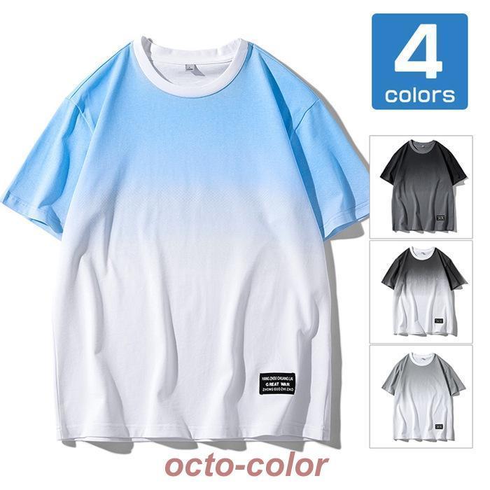 半袖Tシャツ カットソー グラデーション 接触冷感 メンズ 半袖 クルーネック Tシャツ 吸汗速乾 プリント 配色 クール トップス 涼感 おしゃれ