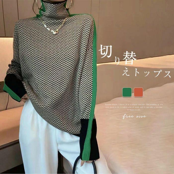 トップス レディース 長袖 ハイネック カットソー プルオーバー ブラスス 切り替え チュール 春 秋 ゆったり おすすめ おしゃれ フリーサイズ 大人フェミニン
