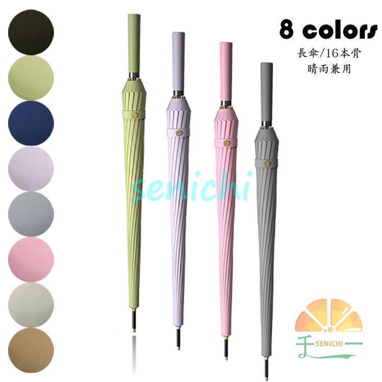長傘 メンズ レディース おしゃれ 晴雨兼用 純色 日傘 撥水加工 雨傘 16本骨 丈夫 紳士 ビジネス傘 遮熱 遮光 大きめ カット 梅雨対応 ワンタッチ