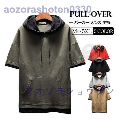 パーカー メンズ 半袖パーカー プルオーバー スウェット トップス 父の日 夏 無地 部屋着 ルームウェア メンズファッション 薄手 涼しい 大きいサイズ おしゃれ