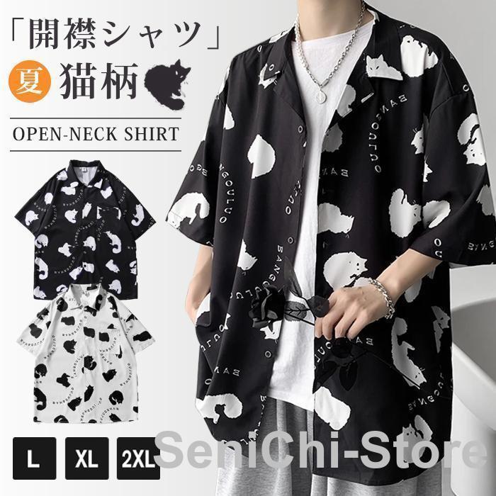 シャツ トップス メンズ 半袖シャツ 猫柄 開襟シャツ メンズシャツ カジュアルシャツ 夏 カジュアル 紳士 メンズファッション オシャレ