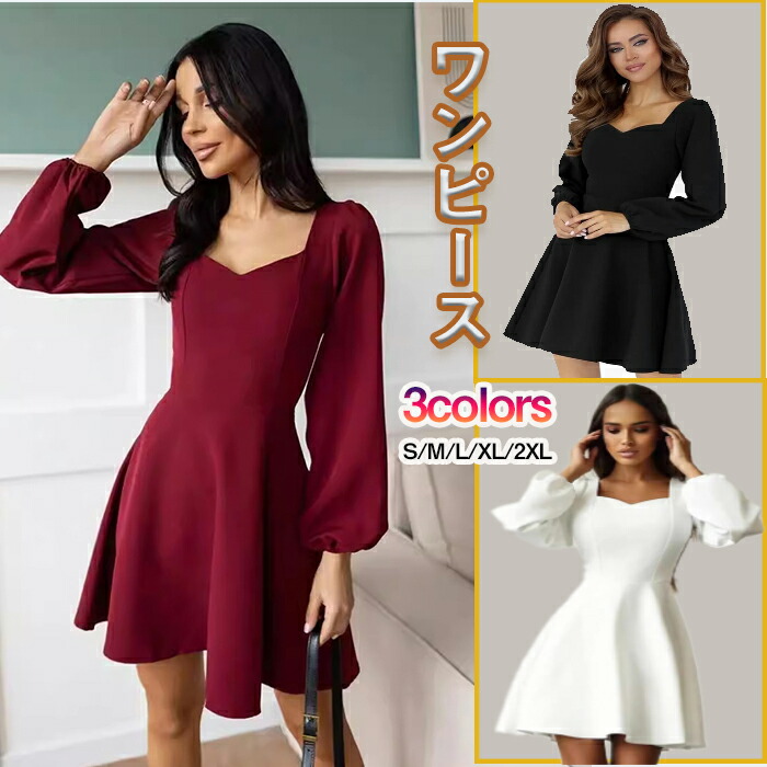 ワンピースレディース ミニドレス Aライン フリル パフスリーブ チュニック シャーリング 着瘦せ 薄手 柔らかい キャミワンピ ファッション かわいい 体型カバー きれいめ 軽量 ドレス S-2XL