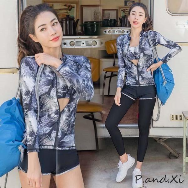 水着 体型カバー レディース 30代 40代 カップ付き 3点セット セパレート フィットネス ママ 日焼け防止 カット 上下セット