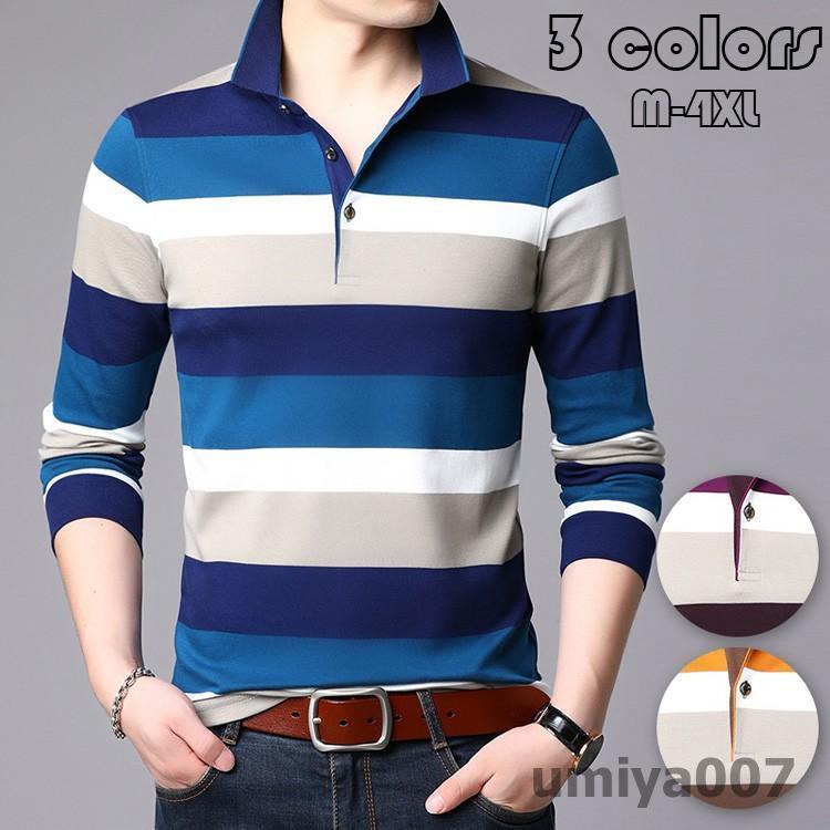 ポロシャツ メンズ トップス 大きいサイズ 長袖 配色切り替え ボーダー柄 トレンド ゴルフウェア おしゃれ スポーツ 秋冬 シャツ 紳士服 カジュアル ゴルフ