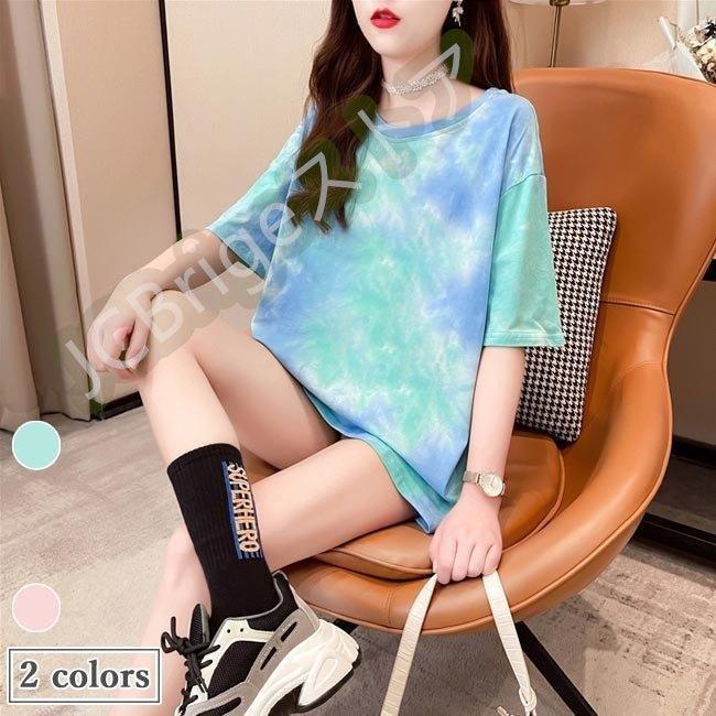 半袖Tシャツ レディース 夏Tシャツ ゆったり Tシャツ ラウンドネック カットソー 半袖 サマーTシャツ ブルー ゆったりTシャツ ピンク