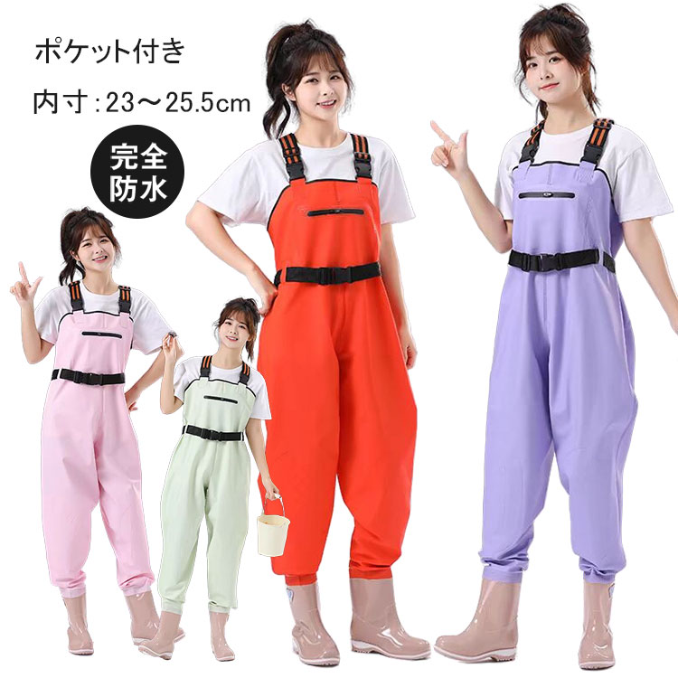 レディース用レインブーツ ウェーダー チェストハイ お釣り 潮干狩り 水遊び 胴付長靴 防水 滑り止め 田んぼ 水場仕事 漁業 水産 渓流 アウトドア オールインワン