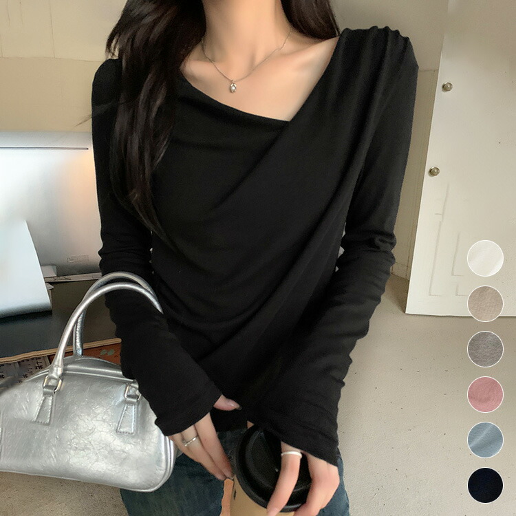 長袖Tシャツ レディース ロングTシャツ ロンt ショート丈 長袖カットソー アシンメトリー ネック 春 秋