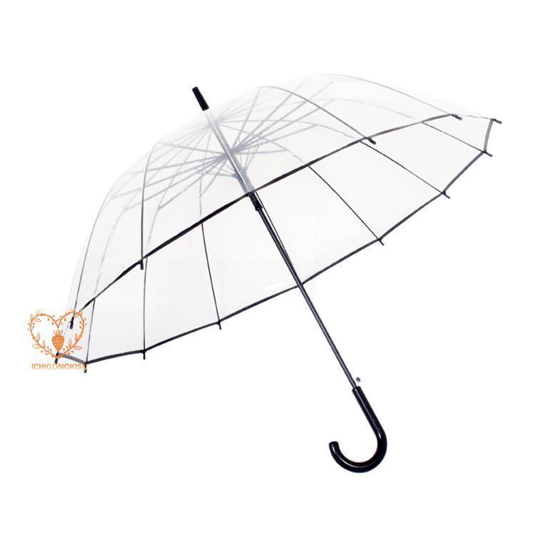 傘 長傘 透明傘 雨傘 レディース メンズ 長柄 ボタン手動開閉式 ワンタッチ 16本骨 かわいい きれいめ 父の日 全面透明