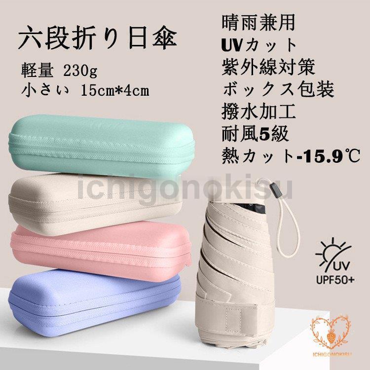 日傘 完全遮光 折りたたみ 軽量230g 15cm レディース 六段折り 折りたたみ傘 傘 晴雨兼用 UVカット 紫外線対策 ボックス付き 遮熱