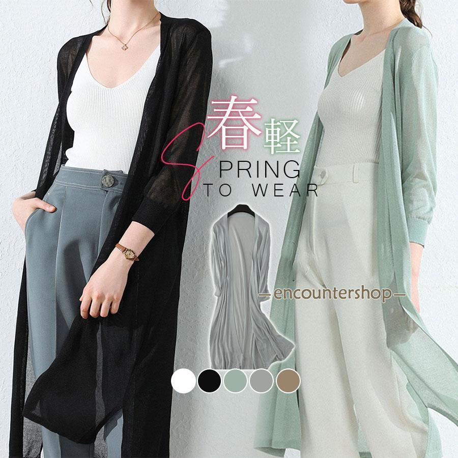 カーディガン レディース ロングカーディガン UVカット 紫外線対策 長袖 エアコン対策 薄手 サマーニット 羽織 夏 シアー