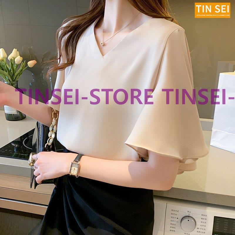 ブラウス レディース きれいめ 40代 春夏 上品 シャツ vネックトップス 五分袖 ゆったり オシャレ 大人 Tシャツ30代 50代 韓国風