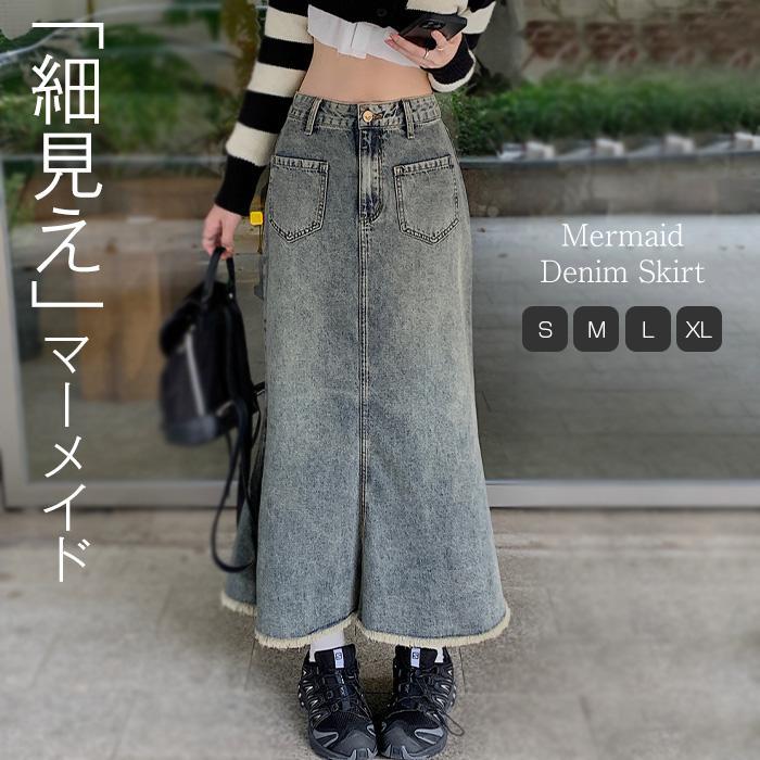 デニムスカート レディース スカート ボトムス ロングスカート 春 秋 ロング丈 無地 ストレート マーメイド ポケット マーメイドスカート 大きいサイズ ジーンズ