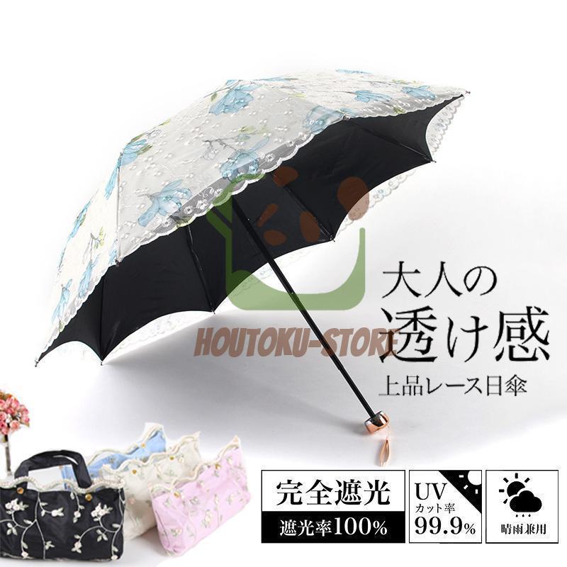 折りたたみ傘 レディース 傘 日傘 軽量 収納バッグ付き 晴雨兼用 二重張り レース UVカット かわいい 遮熱 プレゼント ギフト 涼しい 丈夫 かわず張り 透け感