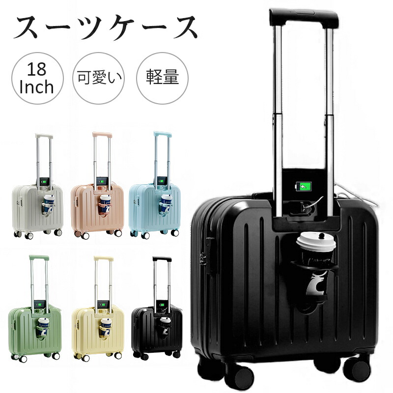キャリーケース 機内持ち込み キャリーバッグ 小型 スーツケース ポート付き ドリンクホルダー 3段調節キャリバー 軽量 子ども用 学生 高校生 大学生 短期旅行/出張 3日2泊 18インチ