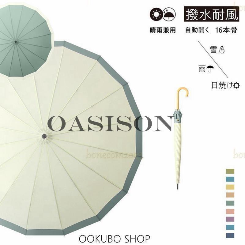 16本骨傘 折れにくい 竹ハンドル 晴雨兼用 日傘 長傘 おしゃれ ワンタッチ グラスファイバー傘 撥水 耐風傘 カット かわいいかさ 通勤 通学用 軽量